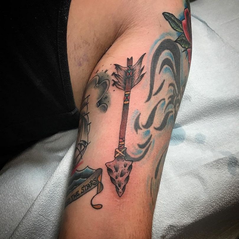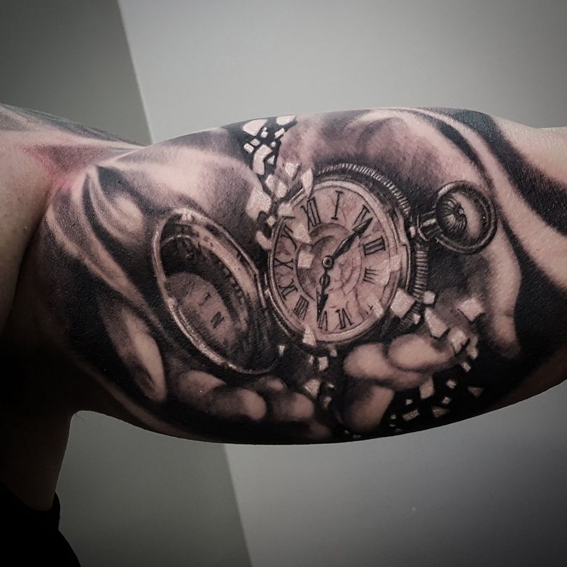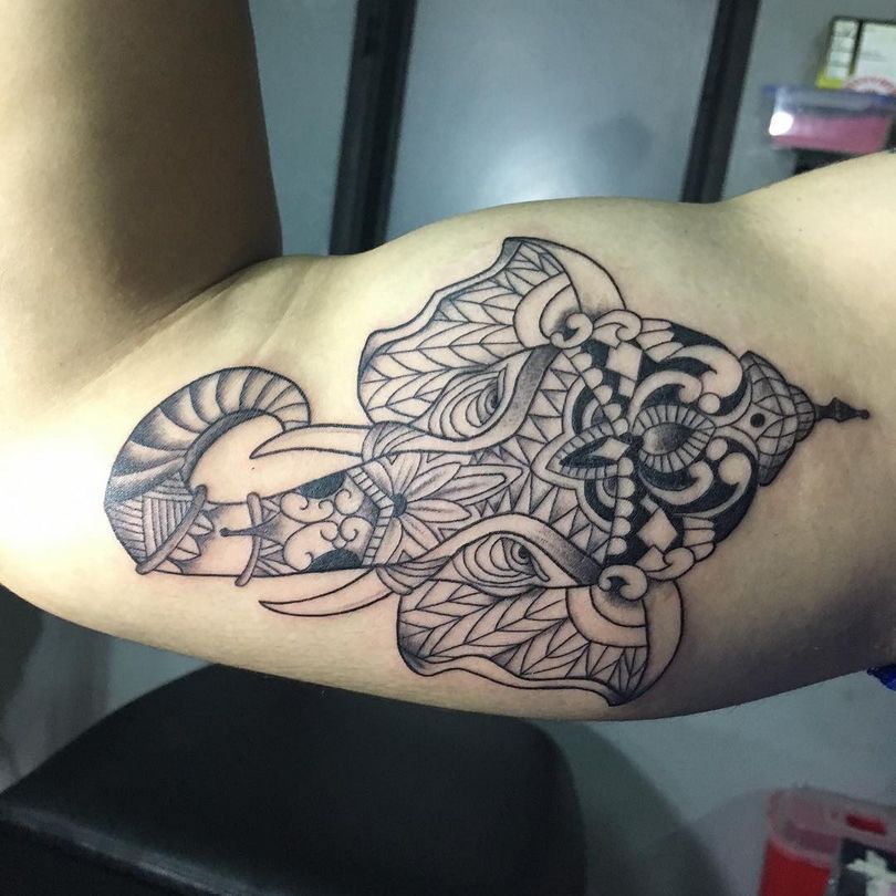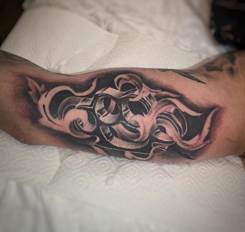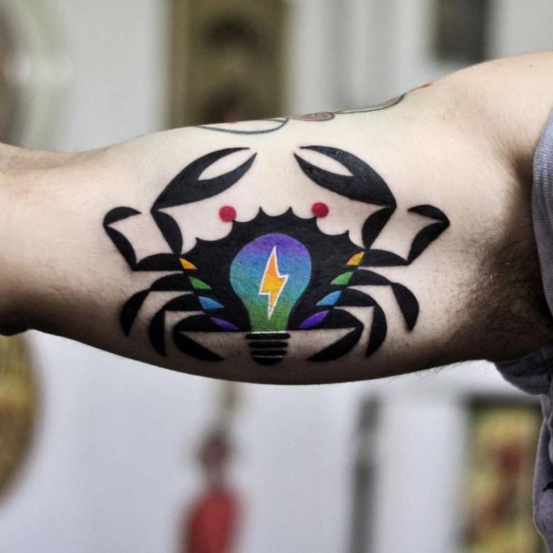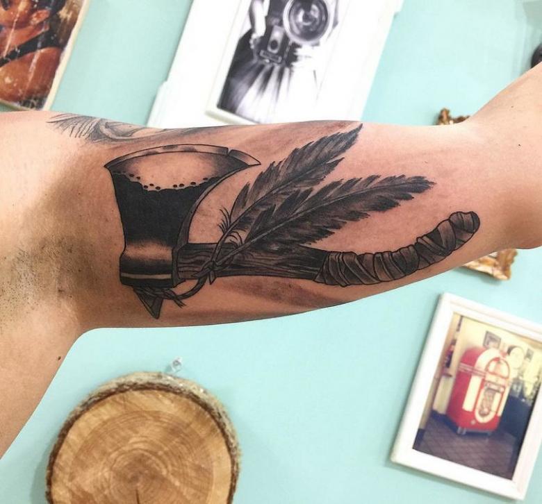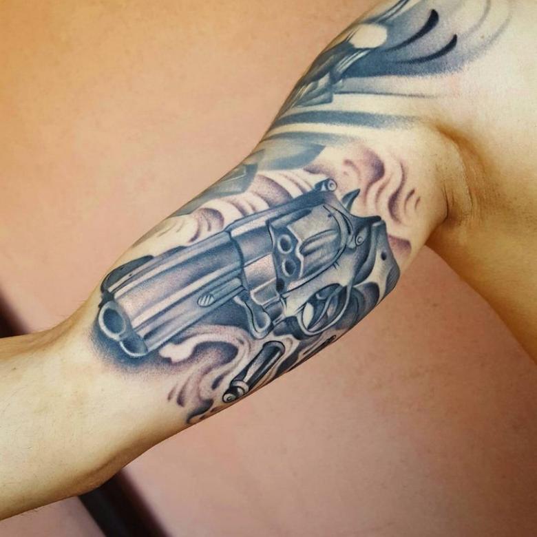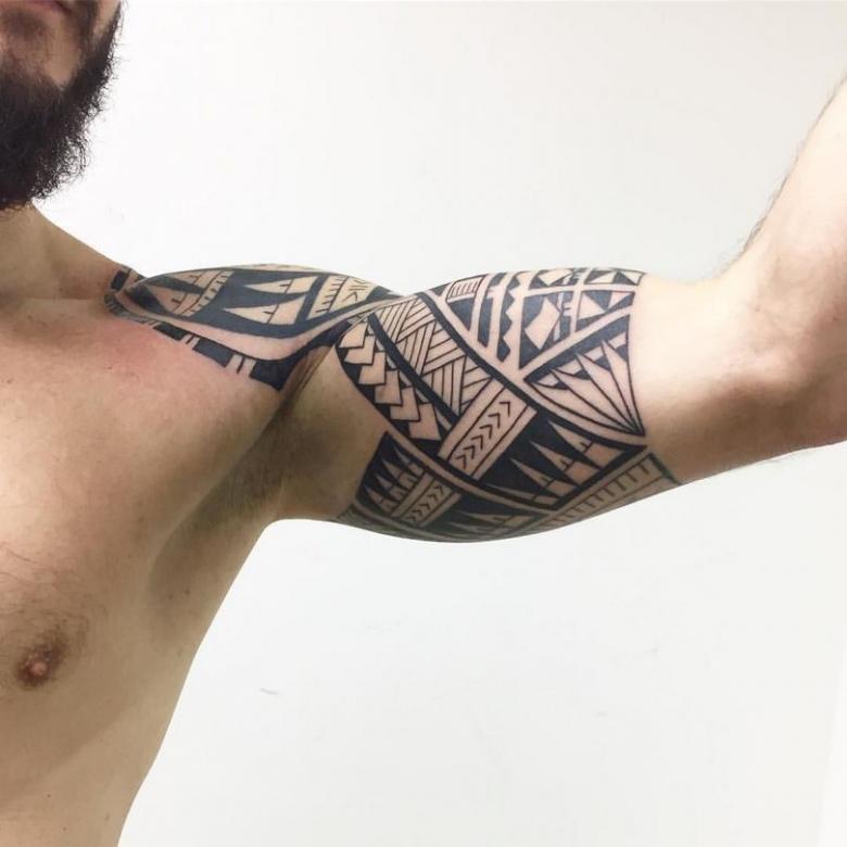 Le tatouage, situé sur le biceps du bras masculin, est l'une des techniques les plus courantes pour souligner la force et la beauté du corps. Si nécessaire, le motif peut être facilement dissimulé sous un vêtement sans manches. Parfois, la composition est placée sur tout le biceps, ou sur sa surface externe ou seulement interne. Comme la surface du corps dans cette partie du bras est assez grande, il est possible d'y placer un motif complexe à plusieurs composants.