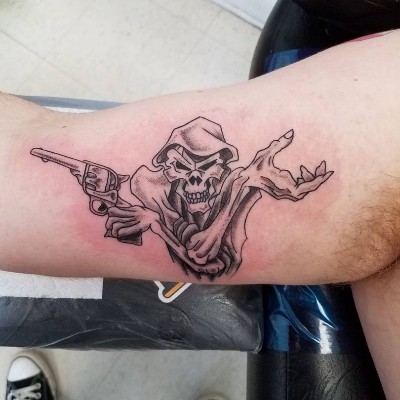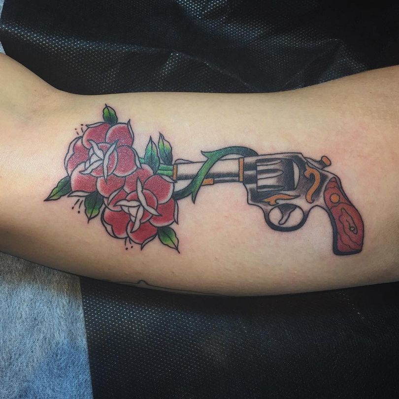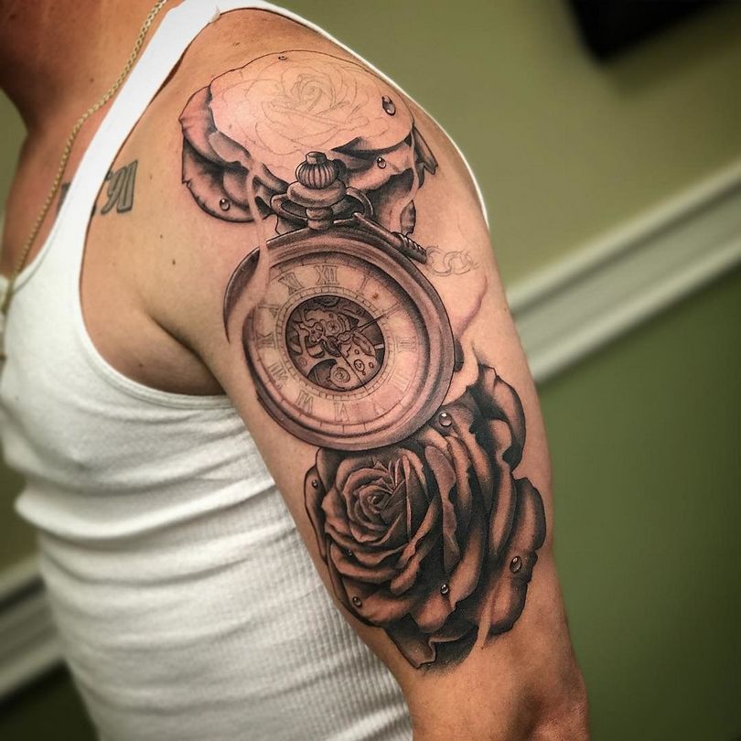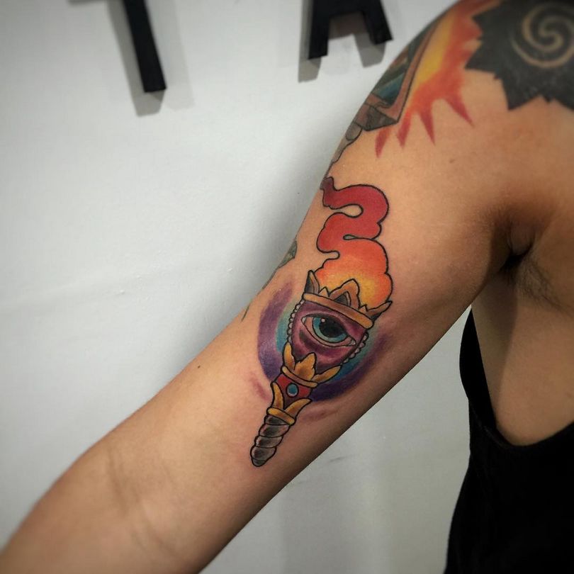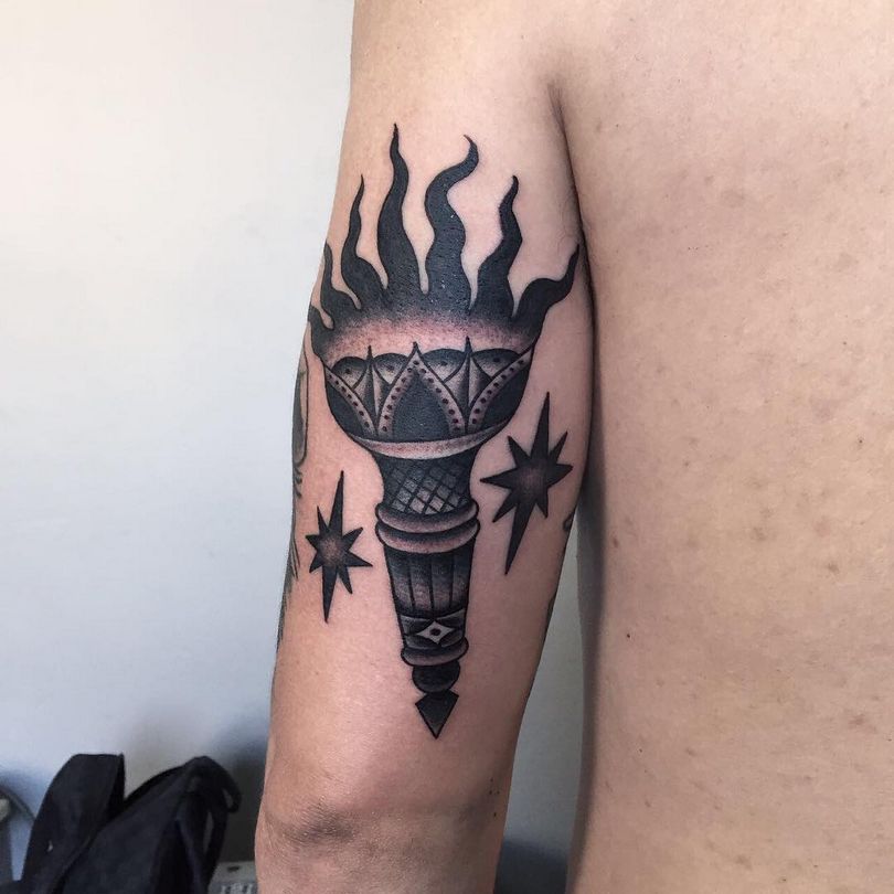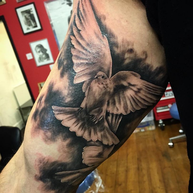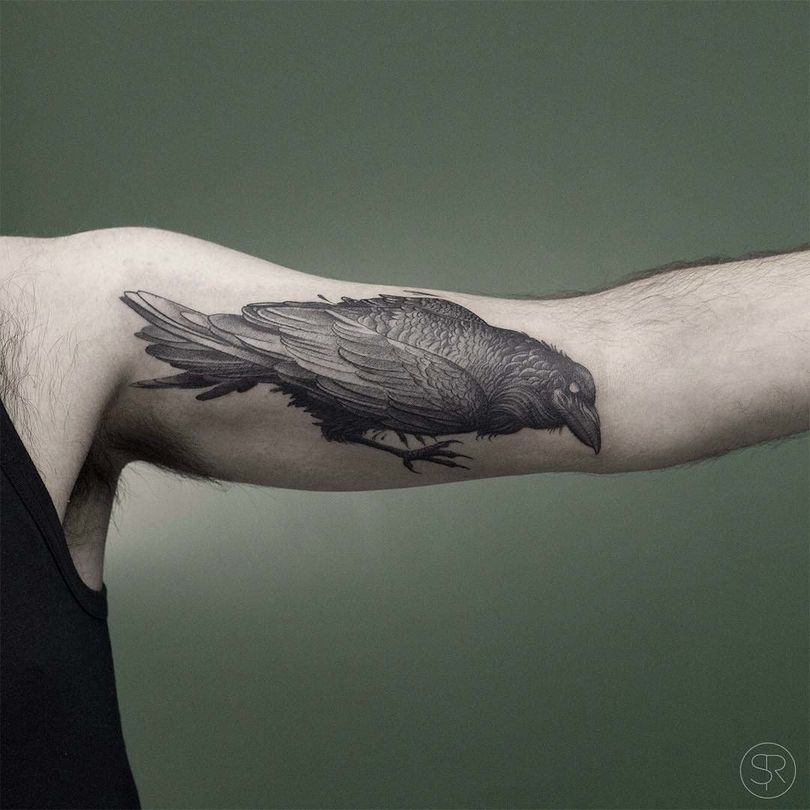 Le tatouage, situé sur le biceps du bras masculin, est l'une des techniques les plus courantes pour souligner la force et la beauté du corps. Si nécessaire, le motif peut être facilement dissimulé sous un vêtement sans manches. Parfois, la composition est placée sur tout le biceps, ou sur sa surface externe ou seulement interne. Comme la surface du corps dans cette partie du bras est assez grande, il est possible d'y placer un motif complexe à plusieurs composants.
