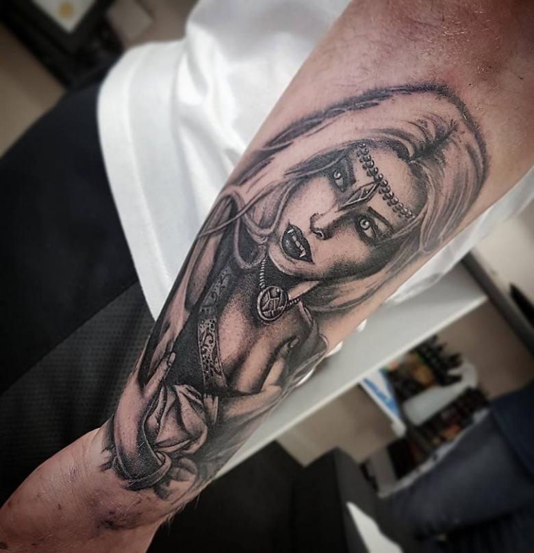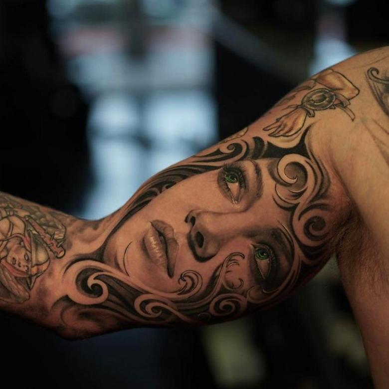 Souvent, sur la partie supérieure du bras, les gars font l'image de la fille aimée. Dans ce cas, il est nécessaire d'être confiant dans celui choisi, de sorte qu'ensuite l'image ne veuille pas s'effacer.