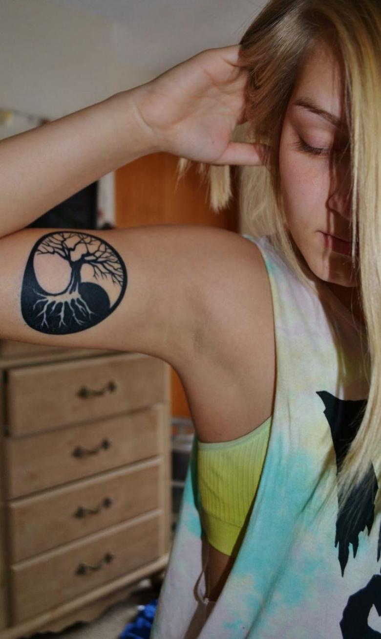 - La démonstration d'un tatouage sur le bras supérieur est assez facile. Mais il est également facile de le cacher si vous le souhaitez. Il est presque impossible de le faire aussi facilement avec une autre partie du corps.