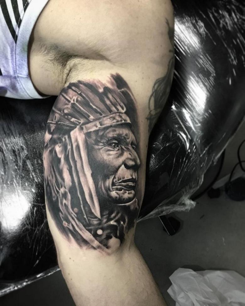 Tatouage sur le biceps pour les hommes - motifs populaires, options d'application (à l'intérieur ou à l'extérieur, autour du biceps), superbes photos
