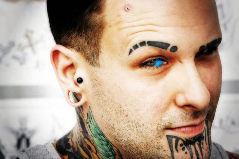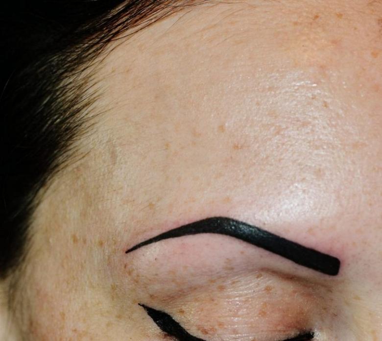 Se faire tatouer sur le visage est beaucoup plus douloureux que sur un bras ou une jambe. Il n'y a pratiquement pas de couche de graisse au-dessus du sourcil et beaucoup de terminaisons nerveuses.