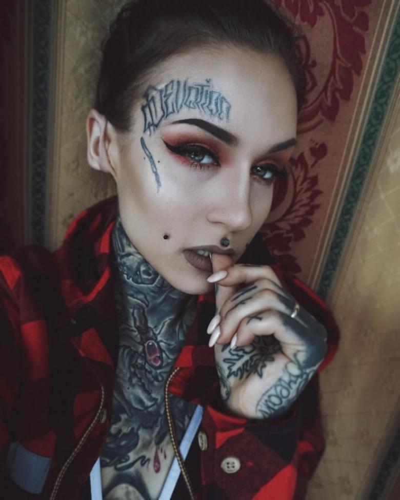 Les tatouages au-dessus des sourcils sont particulièrement populaires. Il met en avant la personne aux yeux des autres, le motif ou le lettrage ne convient pas au style professionnel.