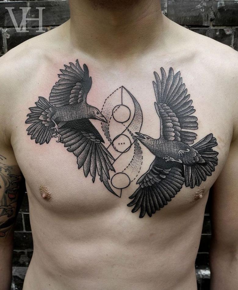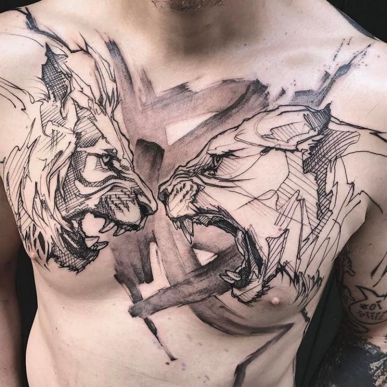 En raison du caractère unique de la poitrine, tout motif peut être utilisé pour souligner les qualités personnelles du porteur, pour embellir, pour attirer l'attention ou pour être un talisman ou une amulette puissants. Un tatouage sur la poitrine d'un homme peut exprimer beaucoup d'informations sur celui qui le porte. Mais le choix doit être fait de manière consciente et responsable, car l'image sur la peau fera partie de la vie entière de l'homme.