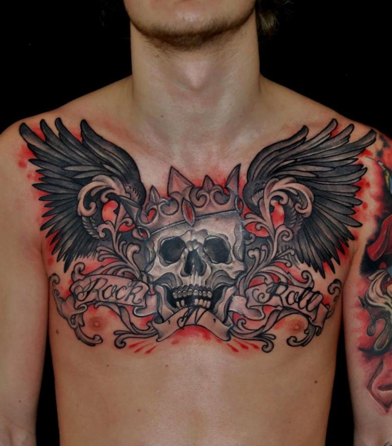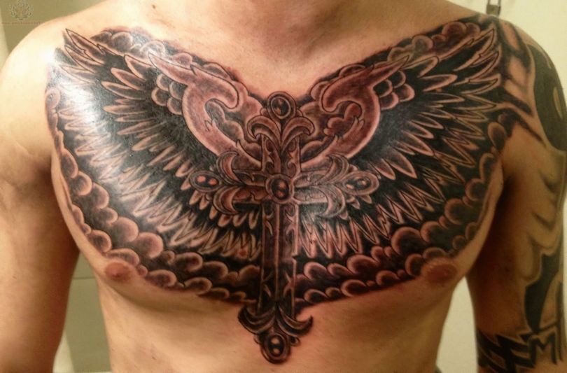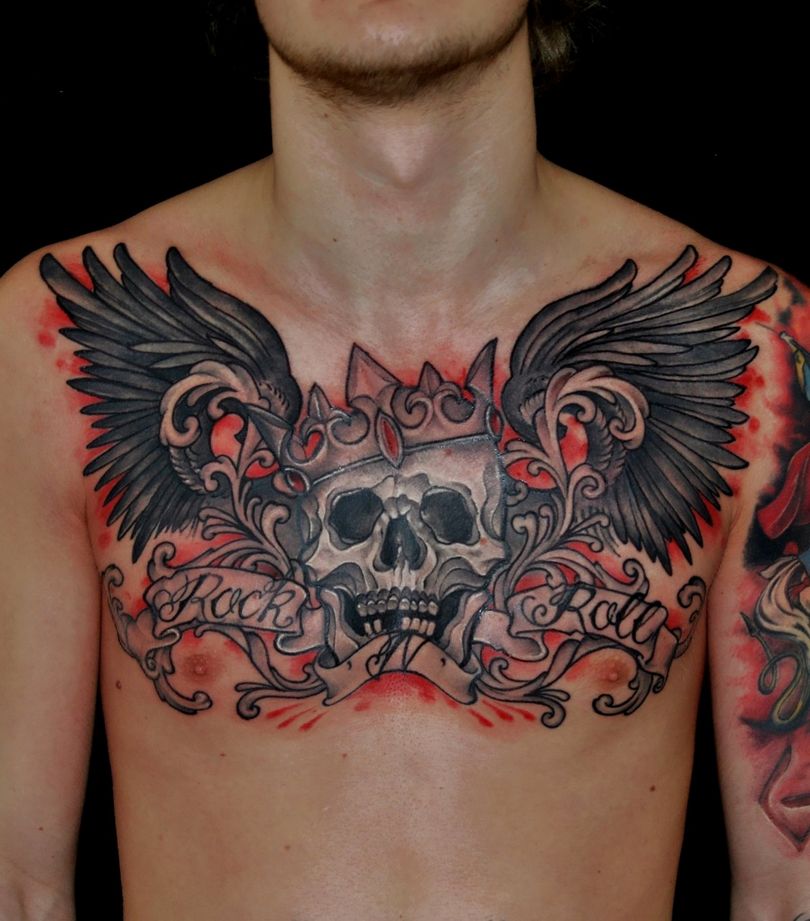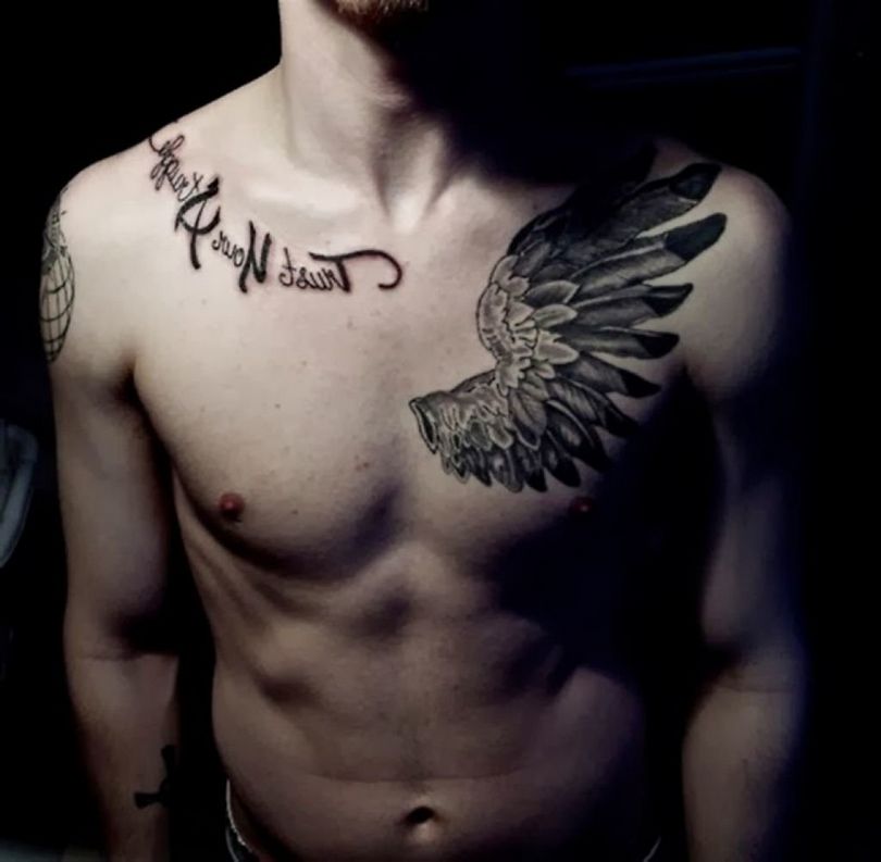Cependant, les hommes modernes utilisent le tatouage sur la poitrine, car c'est un endroit pratique pour appliquer une image tridimensionnelle. Il peut être utilisé à différentes fins. Mais le plus souvent, il est utilisé pour souligner le courage, la définition musculaire et pour mettre visuellement en valeur la poitrine.