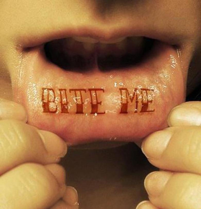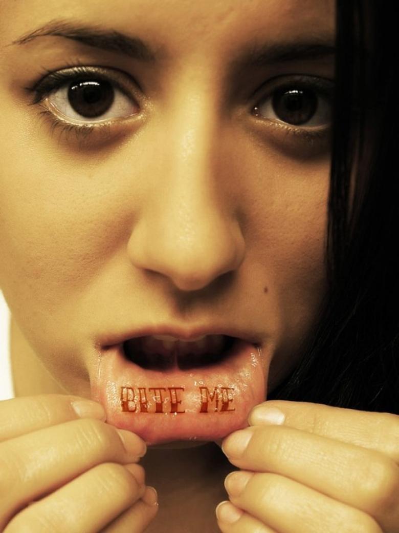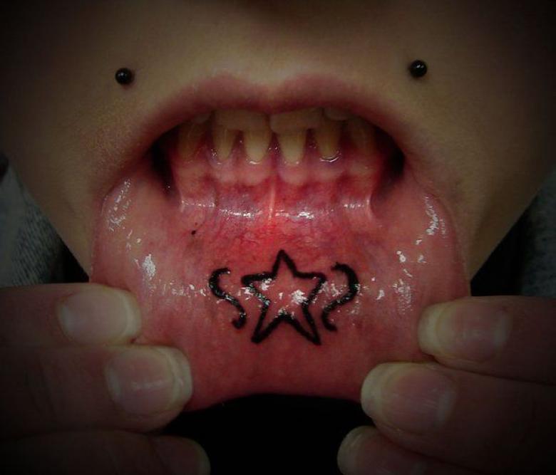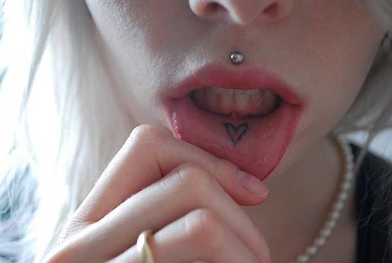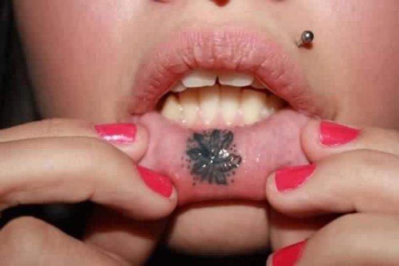 La décoration de l'intérieur de la lèvre avec une image intéressante et originale est proposée aux hommes et aux femmes. Cette zone ne nécessite aucune préparation ni technologie particulière et constitue la zone à tatouer dans les cas les plus courants :