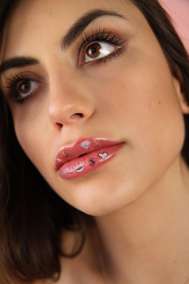 Pour un dessin sur la face interne de la lèvre, on choisit le plus souvent des motifs très simples, voire esquissés. Les signes symboliques et les dessins stylisés qui ne prennent pas beaucoup de place et sont rapidement reconnaissables et chargés de sens profond sont très populaires :