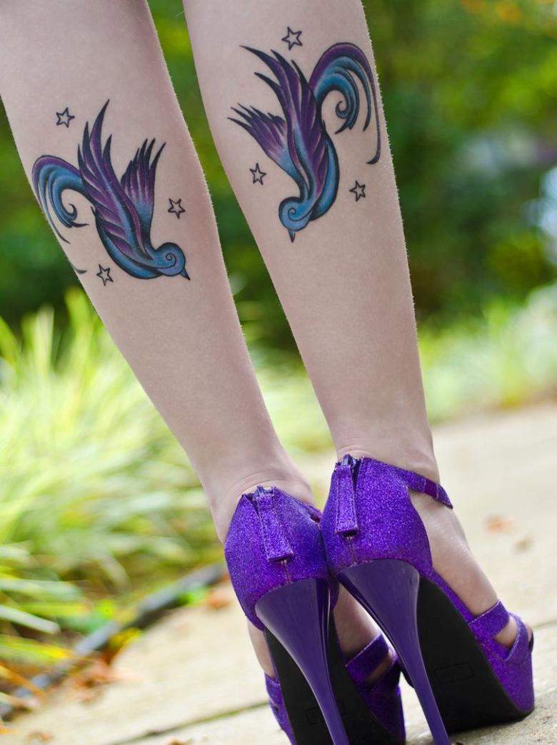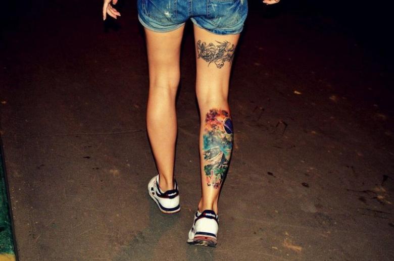 Pour ceux qui ont décidé pour la première fois de mettre une image sur le mollet, vous pouvez conseiller un petit tatouage. Les tatouages doivent être placés sur les côtés et non dans le dos. De cette façon, ils seront plus faciles à voir et plus dynamiques. Les petites photos seront plus faciles à enlever ou à refaire sur des photos plus volumétriques. Et les images locales sont bon marché.