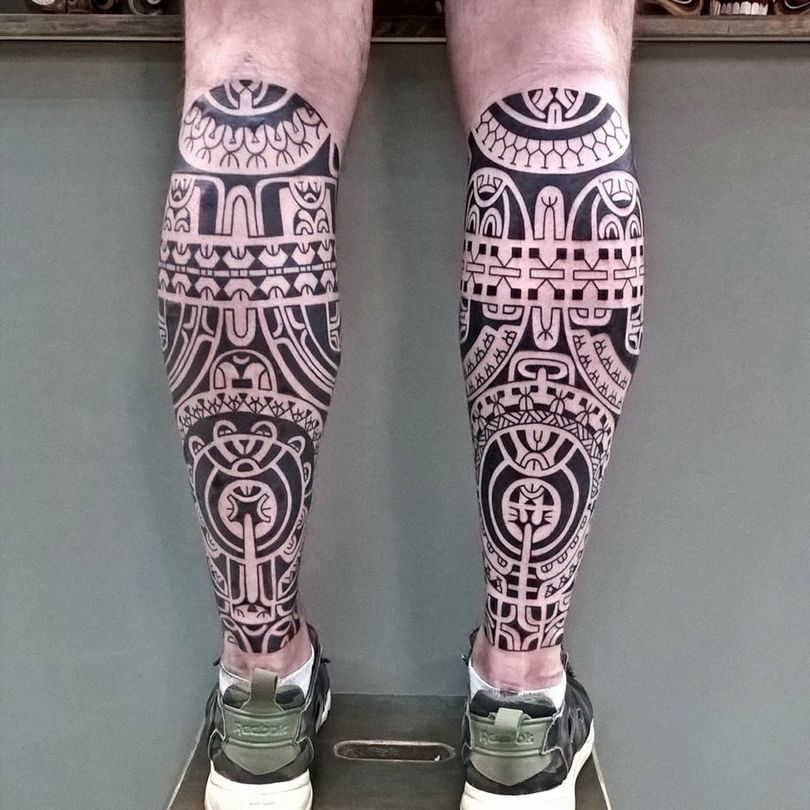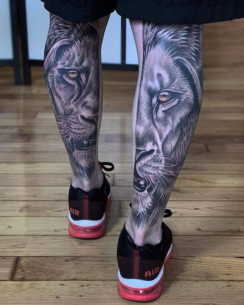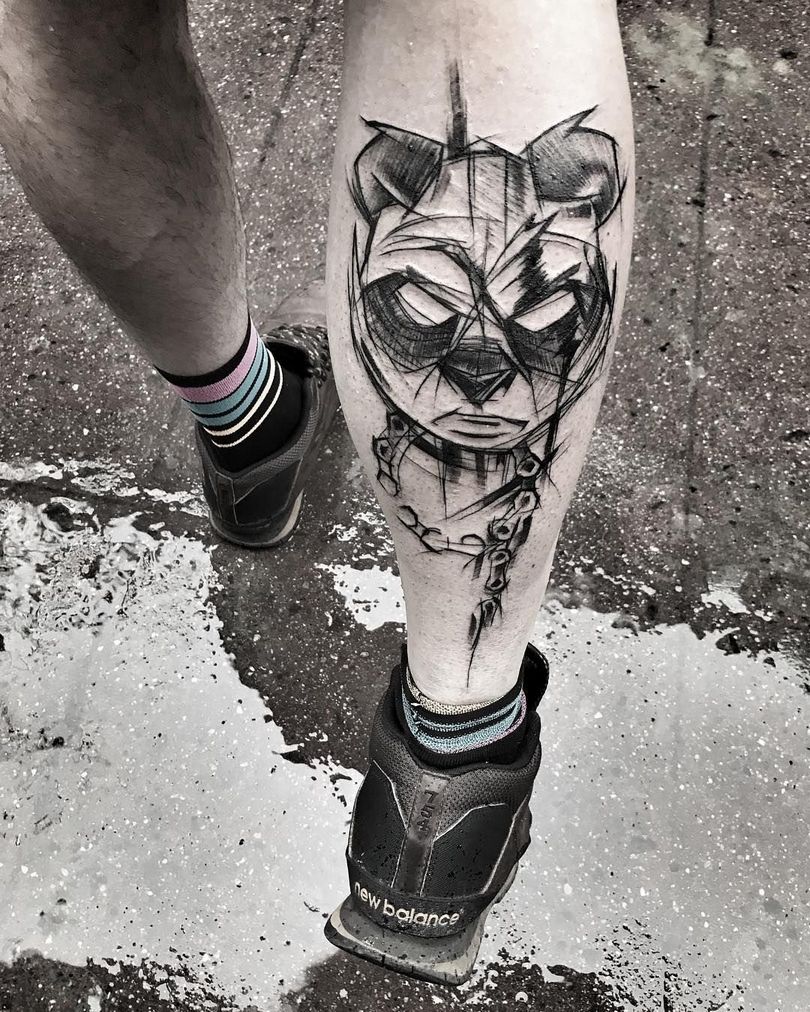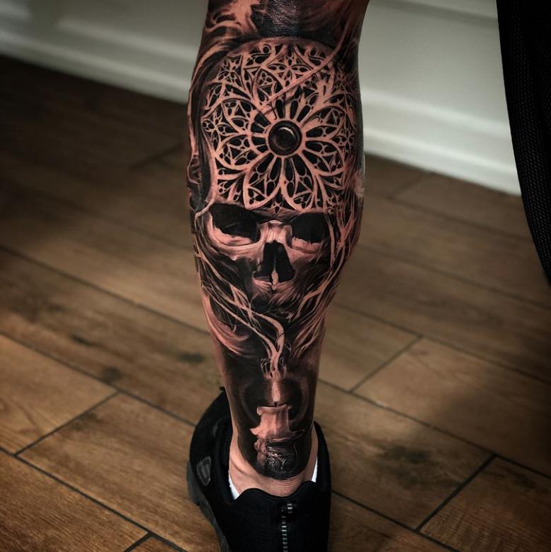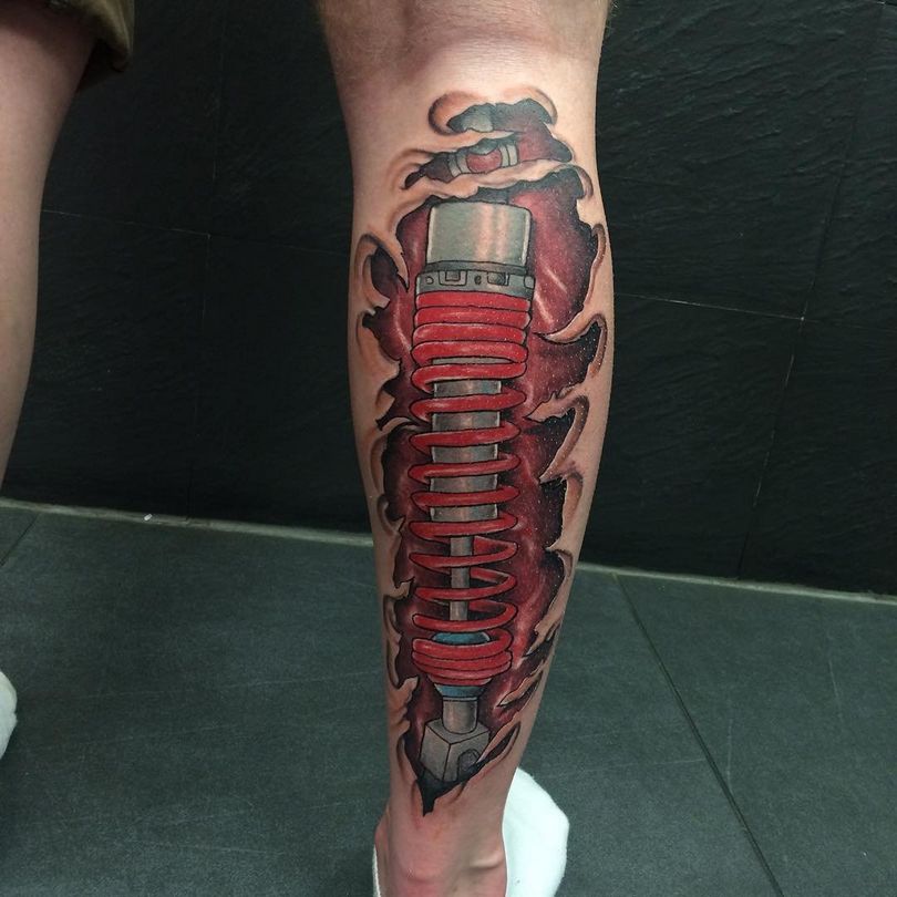 Une surface de peau suffisamment grande pour permettre un tatouage à grande échelle. La rondeur des mollets est une excellente base pour les dessins tridimensionnels et les compositions en 3D. Les veaux représentent la stabilité d'une personne, son soutien. En même temps, ils ne sont pas dépourvus de dynamique et de mouvement. C'est l'occasion d'aborder un thème de tatouage très populaire aujourd'hui : la biomécanique.