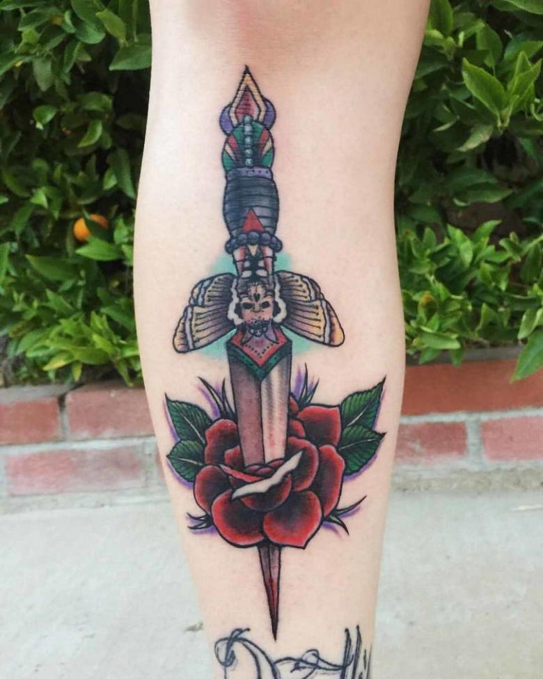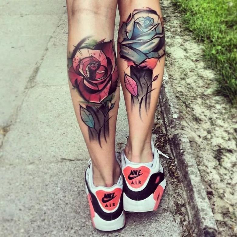 Tatouage sur le mollet - avantages, styles, motifs masculins et féminins, idées de photos sympas