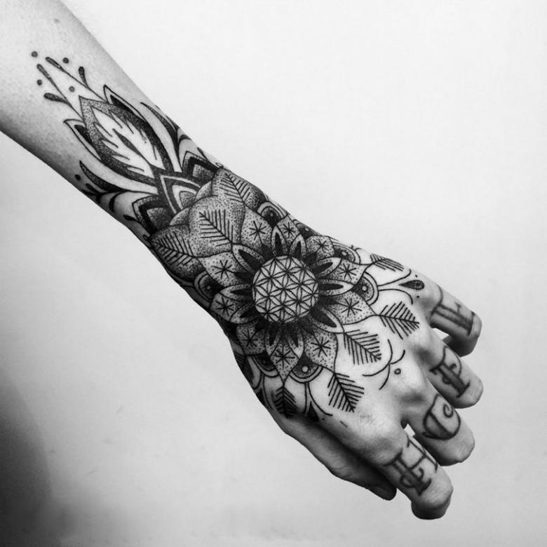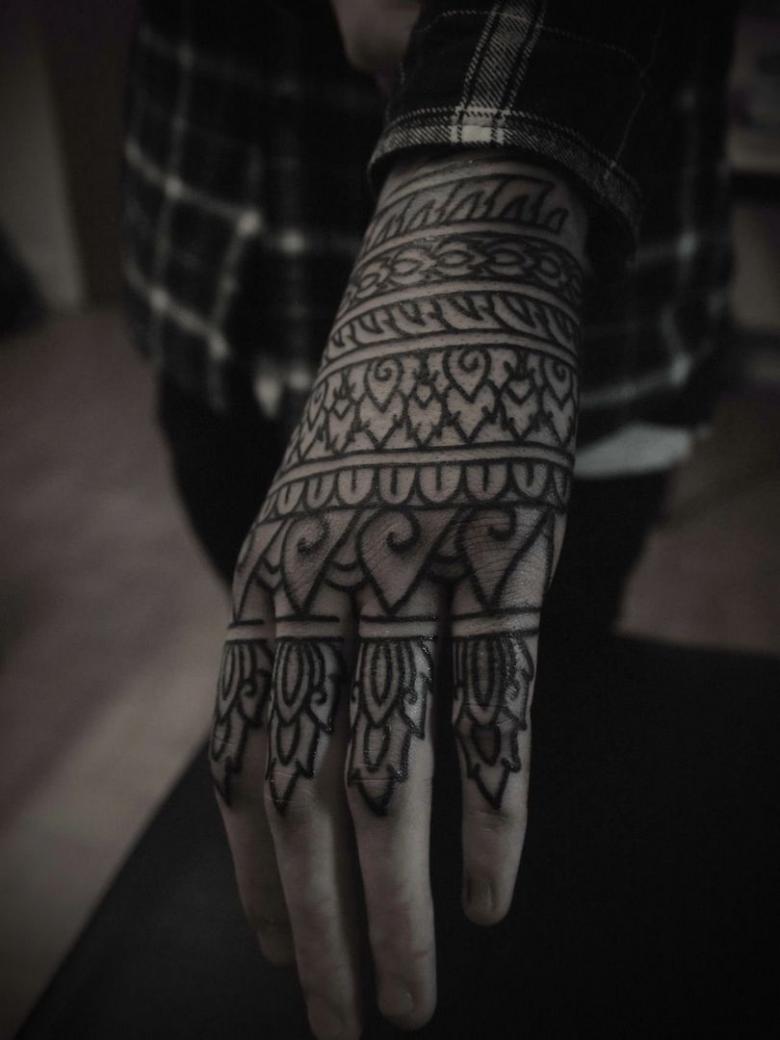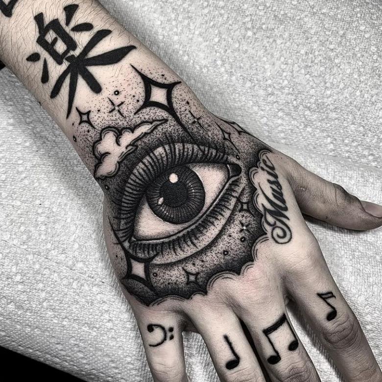 Cette partie du corps humain est ouverte aux autres. Toujours le cacher sous les vêtements est presque impossible. C'est pourquoi vous décidez de vous faire tatouer la main de personnes courageuses, sûres d'elles-mêmes, voire désespérées. Souvent, il s'agit également d'un défi lancé à la société, un indicateur de leur vision du monde et de leur adhésion à une religion particulière.