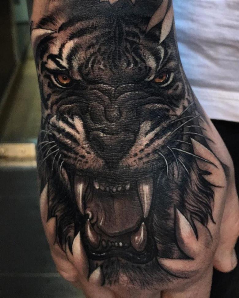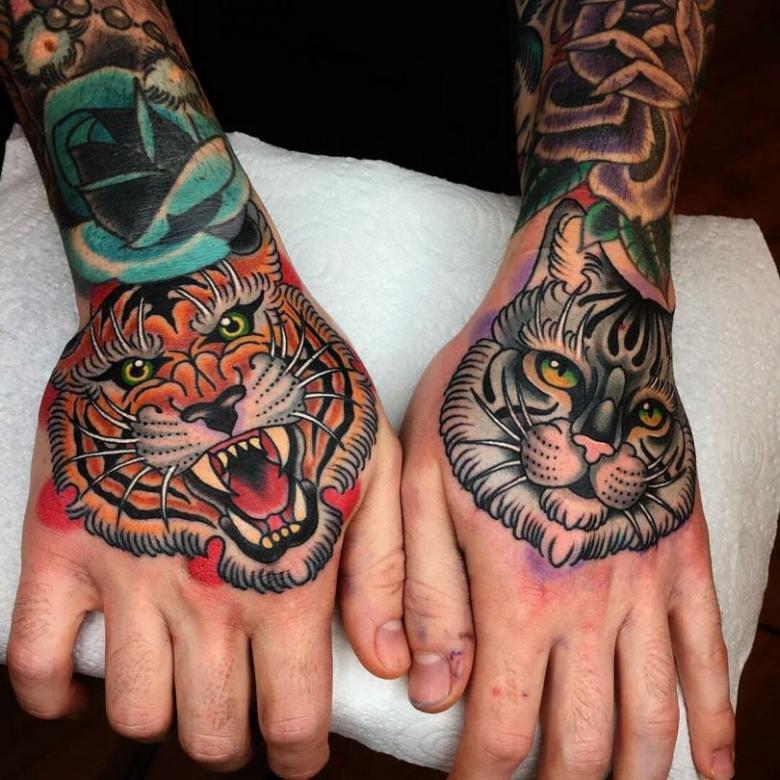 Souvent, ce n'est pas seulement le design qui compte, mais aussi l'endroit où il est appliqué. Par exemple, les mâchoires de proie du tigre sont superbes sur le poing serré d'un homme. En fait, le poing et devient la tête du tigre.