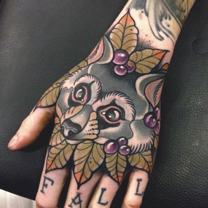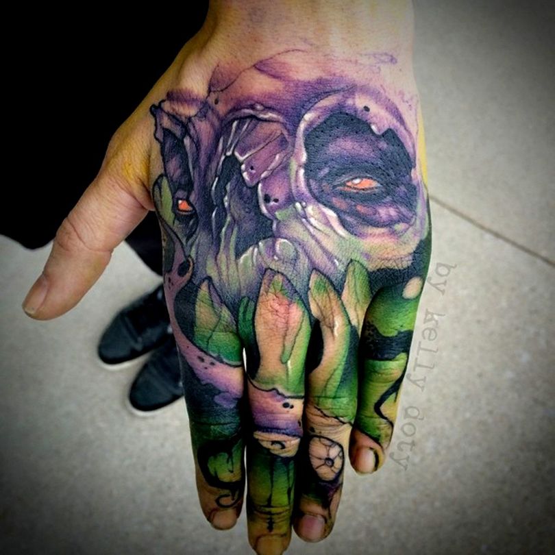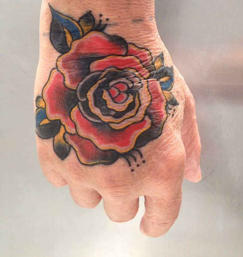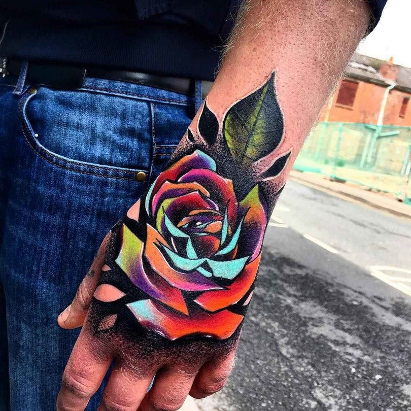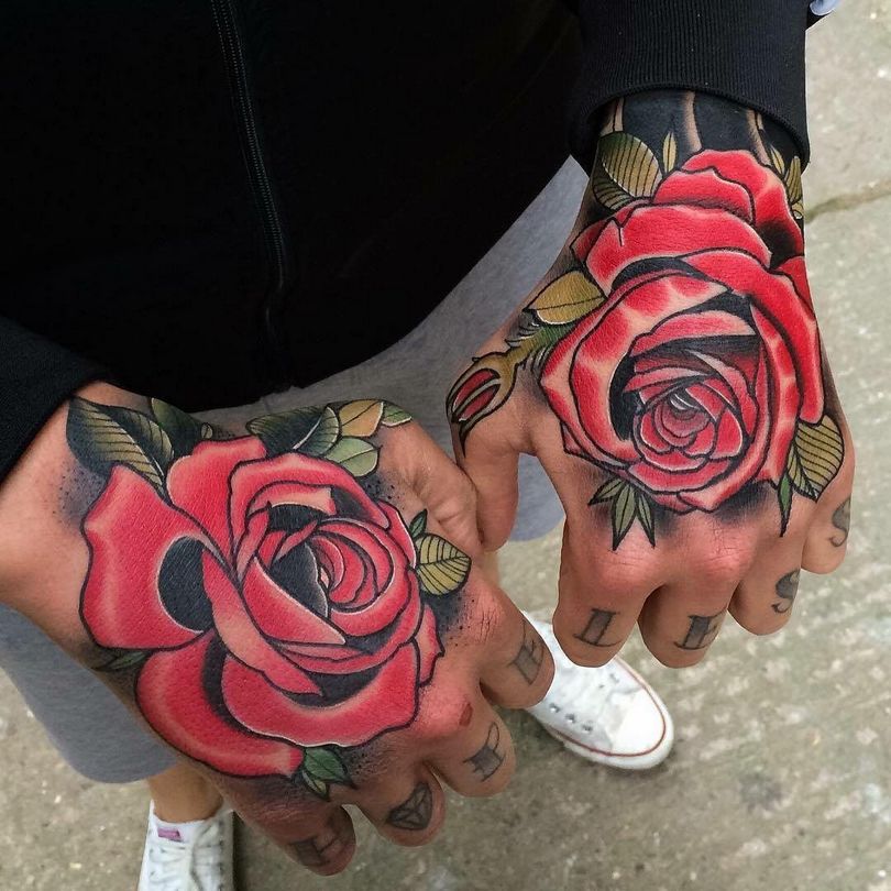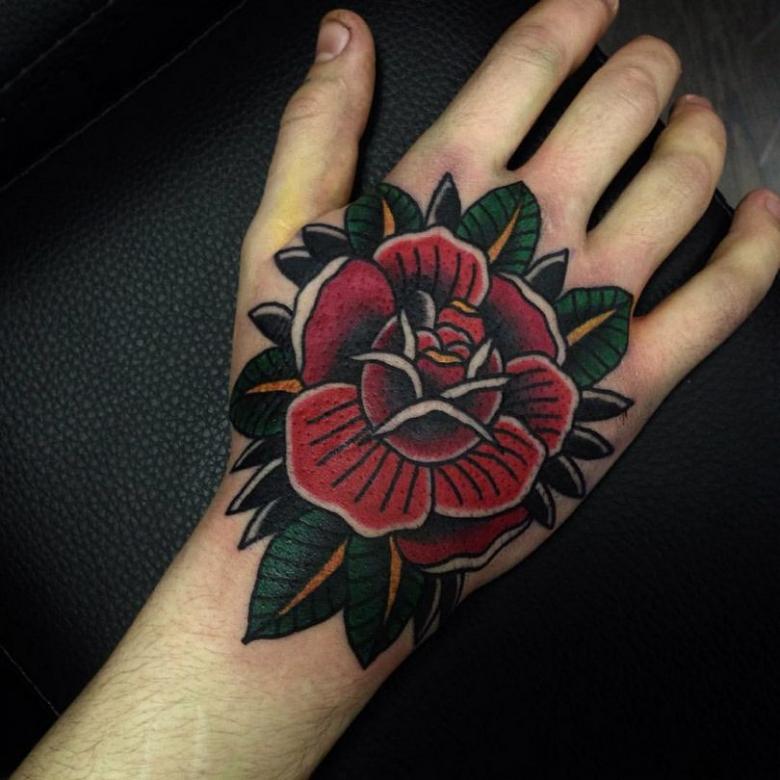 La paume et le poignet ouverts sont très incurvés et la peau est souvent ridée dans ces zones. Le tatouage s'effacera alors très rapidement. Il peut également perdre la saturation de ses couleurs. Les tatouages sur la main doivent être traités avec prudence. Les mains sont la partie du corps la plus fréquemment frottée. Par conséquent, seul un tatouage réalisé par un professionnel durera longtemps.