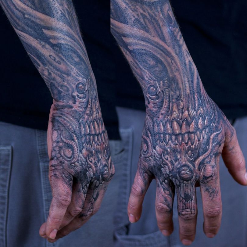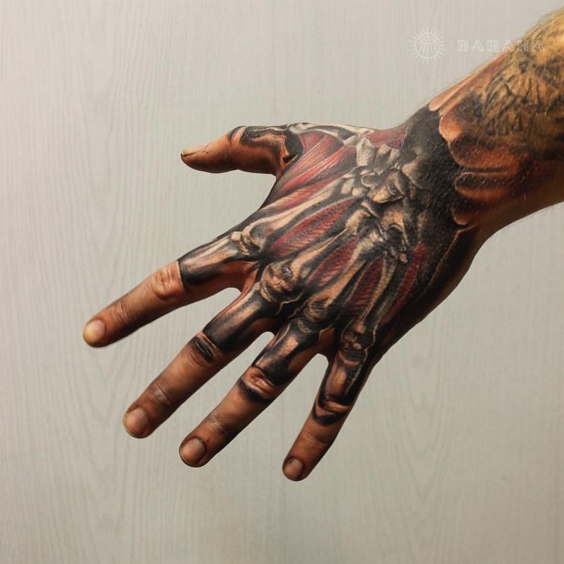Tout dépend du niveau du tatoueur, de la complexité d'un dessin initial, d'une photo, d'une esquisse, du désir du client, de la capacité d'improvisation, du compromis. Souvent, le tatouage sur le pinceau n'est pas une image séparée. Il complète le motif ou est inclus dans l'ensemble de la composition globale, appliqué du cou à la brosse. Populairement, le tatouage tridimensionnel est placé sur la paume et l'avant-bras en même temps.