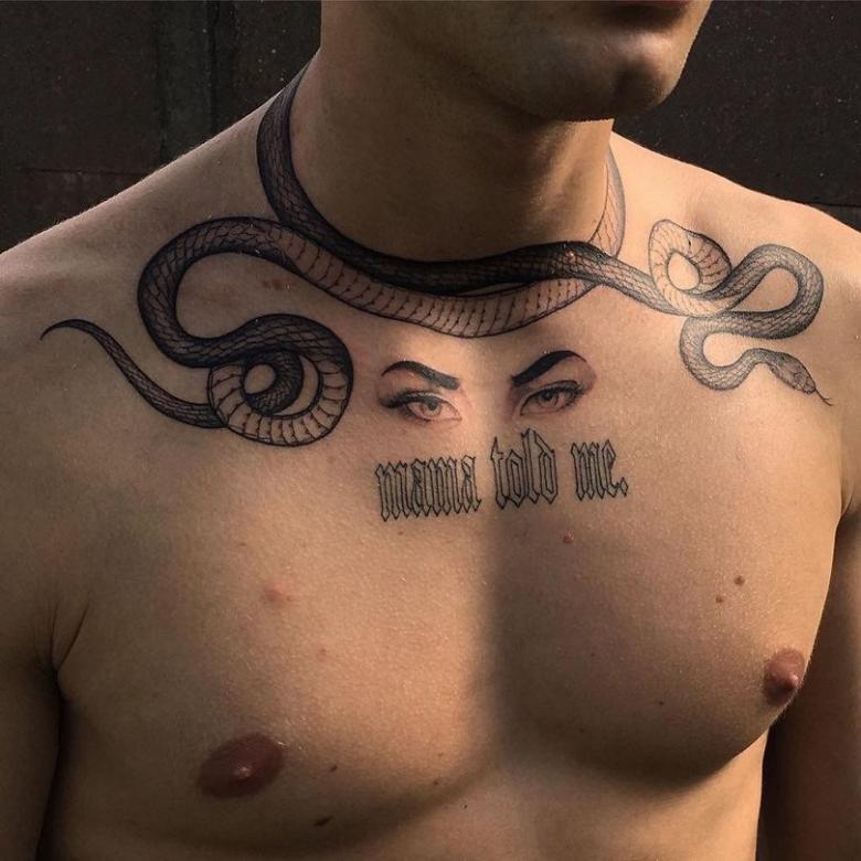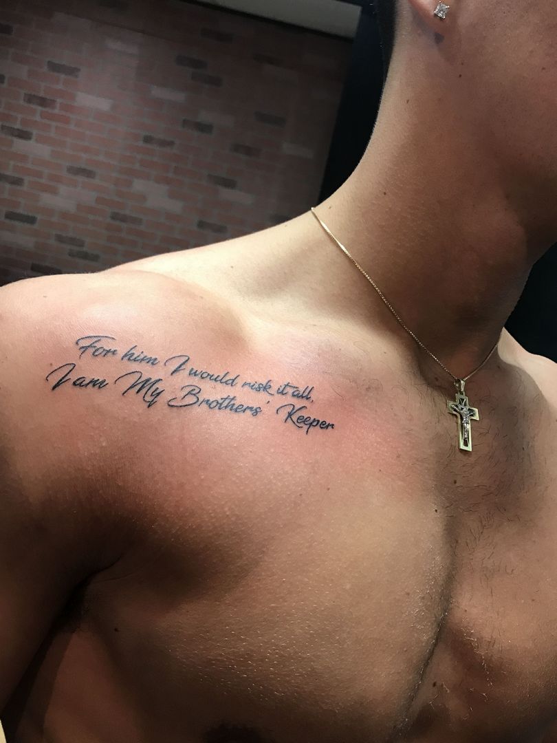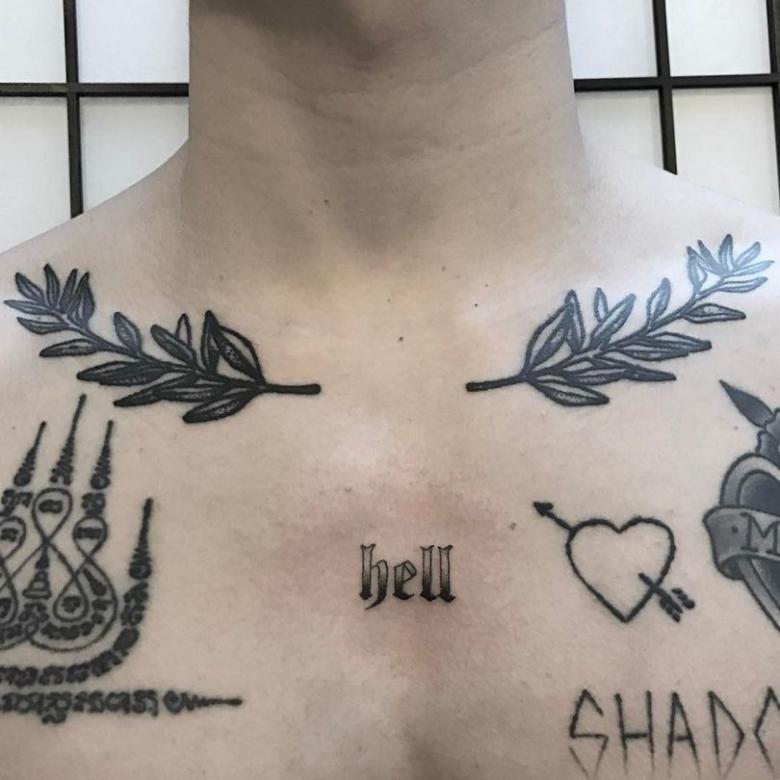 Tatouage sur la clavicule pour les hommes - images et écrits populaires, photos