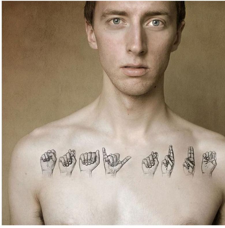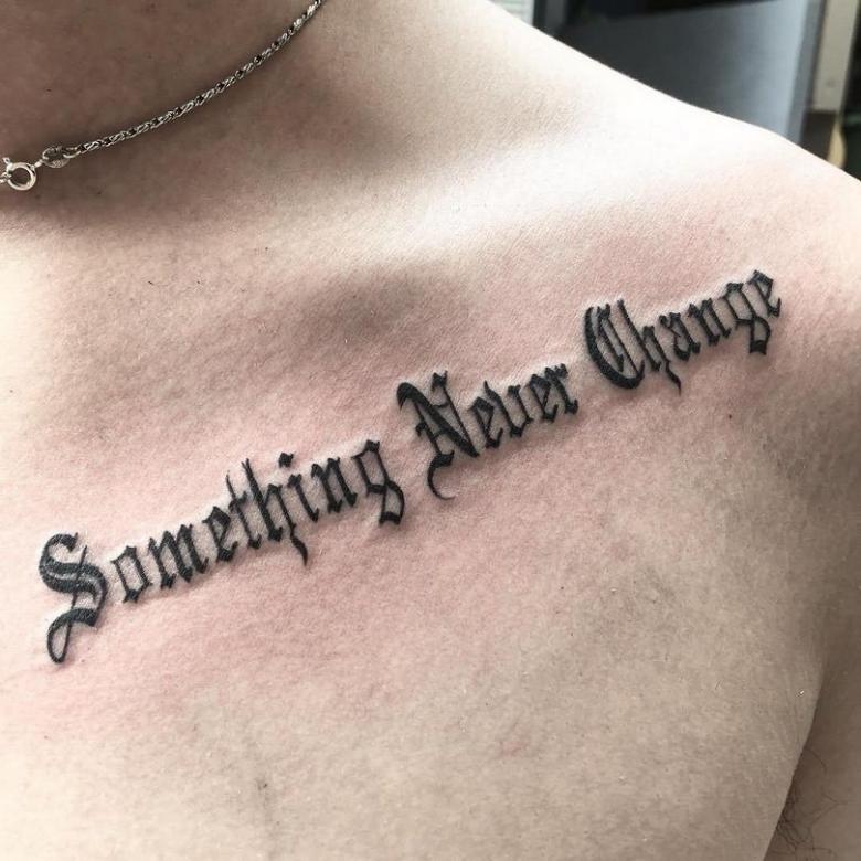 Ce que vous écrirez sur votre clavicule signifiera un appel à la société, un désir d'être entendu. Choisissez d'abord la langue du texte, puis la police.