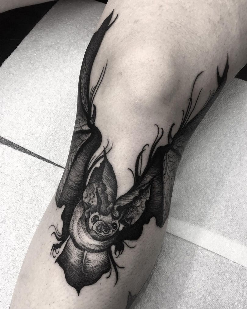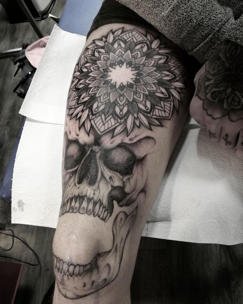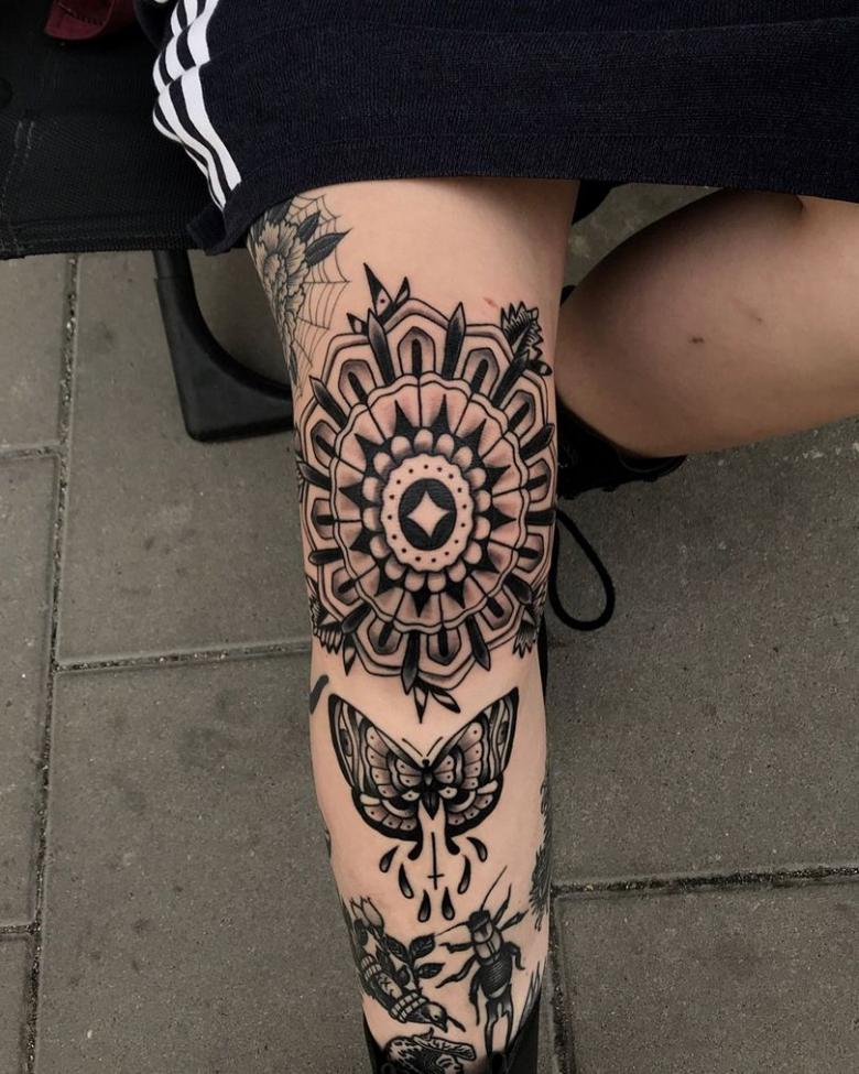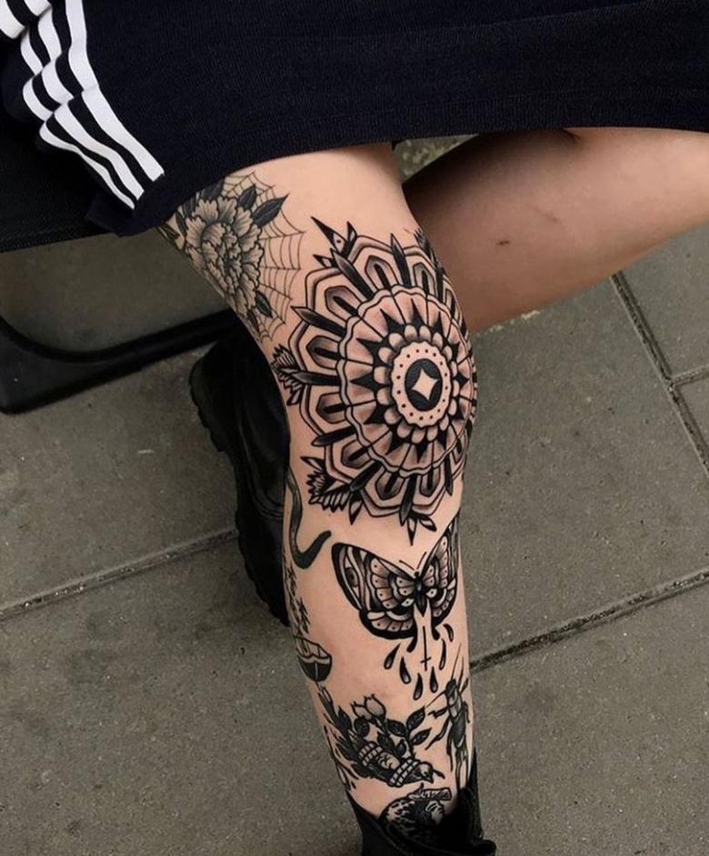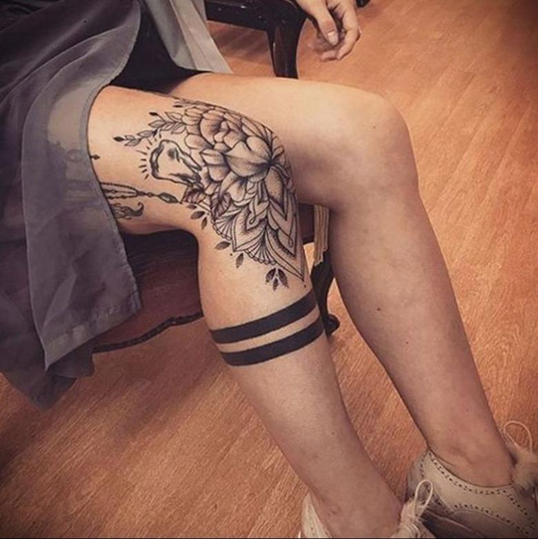 Tatouage sur le genou - croquis des options, comment réduire la douleur pendant l'application, photos spectaculaires
