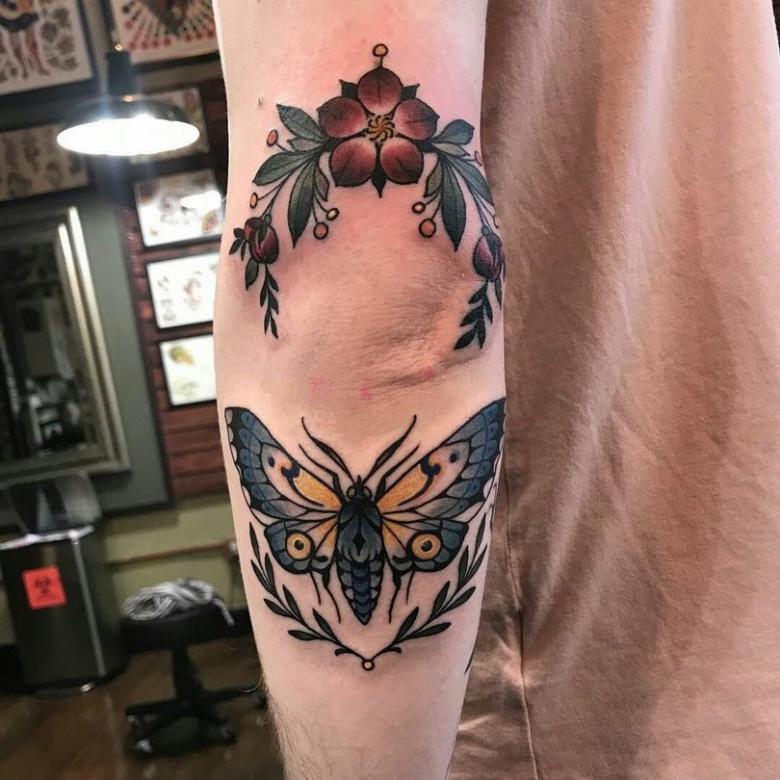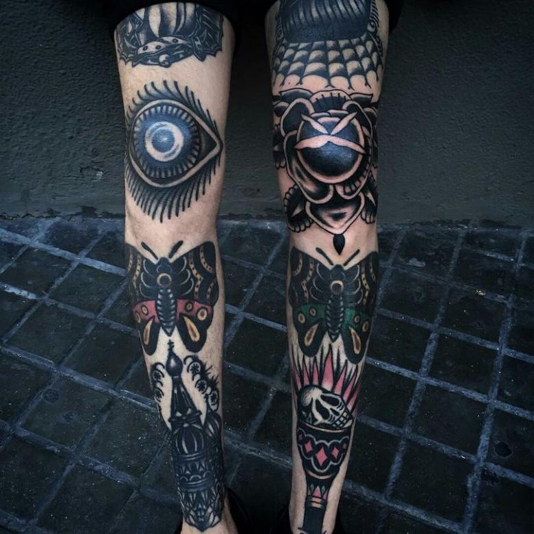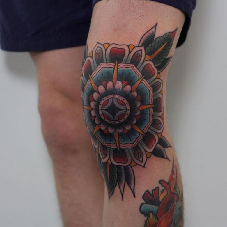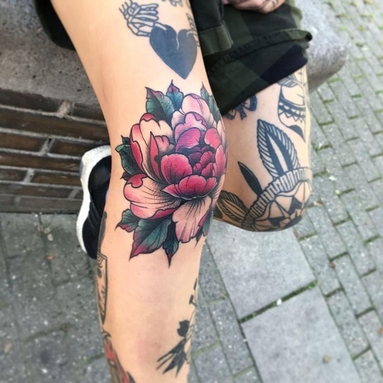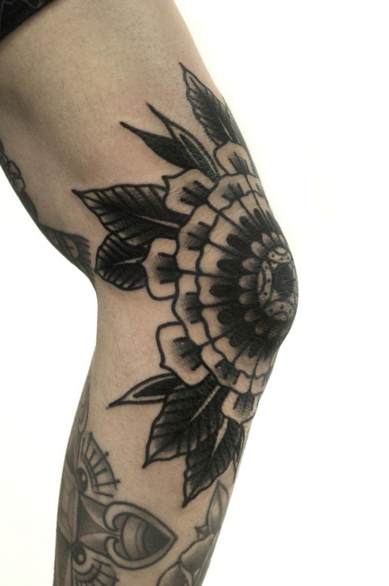 Le tatouage est réalisé dans les styles old-school, biomécanique, oriental, baroque et aquarelle. Un tatouage de style réaliste n'est pas une bonne idée. La peau d'un genou est épaisse et rugueuse, sur laquelle sont mal posés les détails les plus fins.