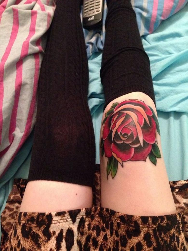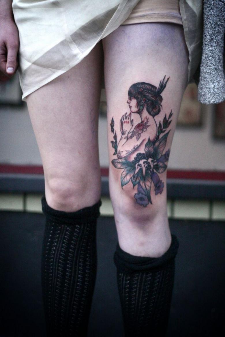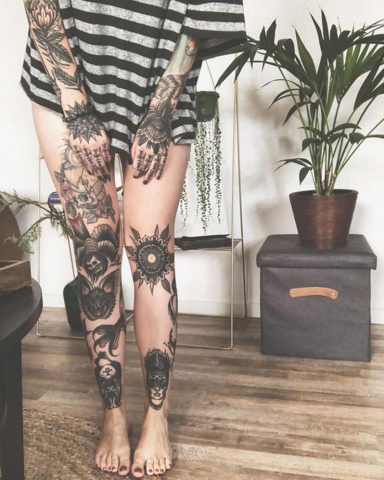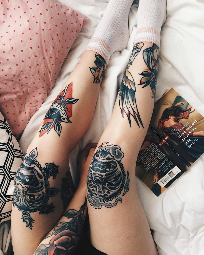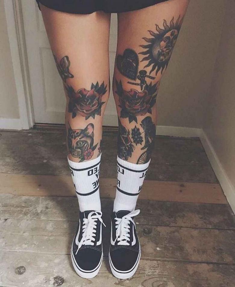 La zone proche du genou est moins douloureuse. Une fille qui aime cette zone particulière peut se faire tatouer sous ou sur son genou.