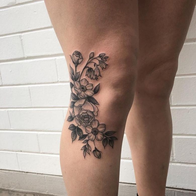 Si les filles osent se faire un tatouage sur le genou, elles choisissent des fleurs, des papillons, des arcs ou de mignons museaux de chatons et d'oursons tigrés. Et bien sûr, les roses écarlates sont le moyen le plus sûr d'attirer l'attention.