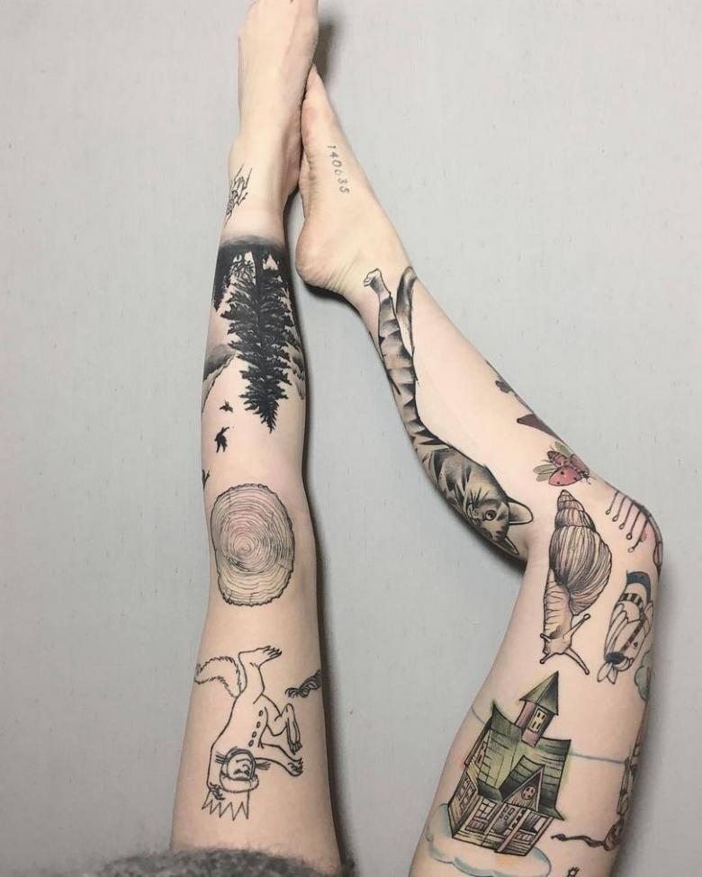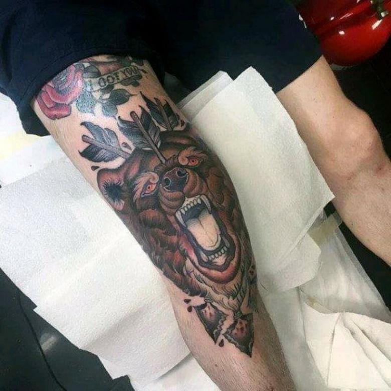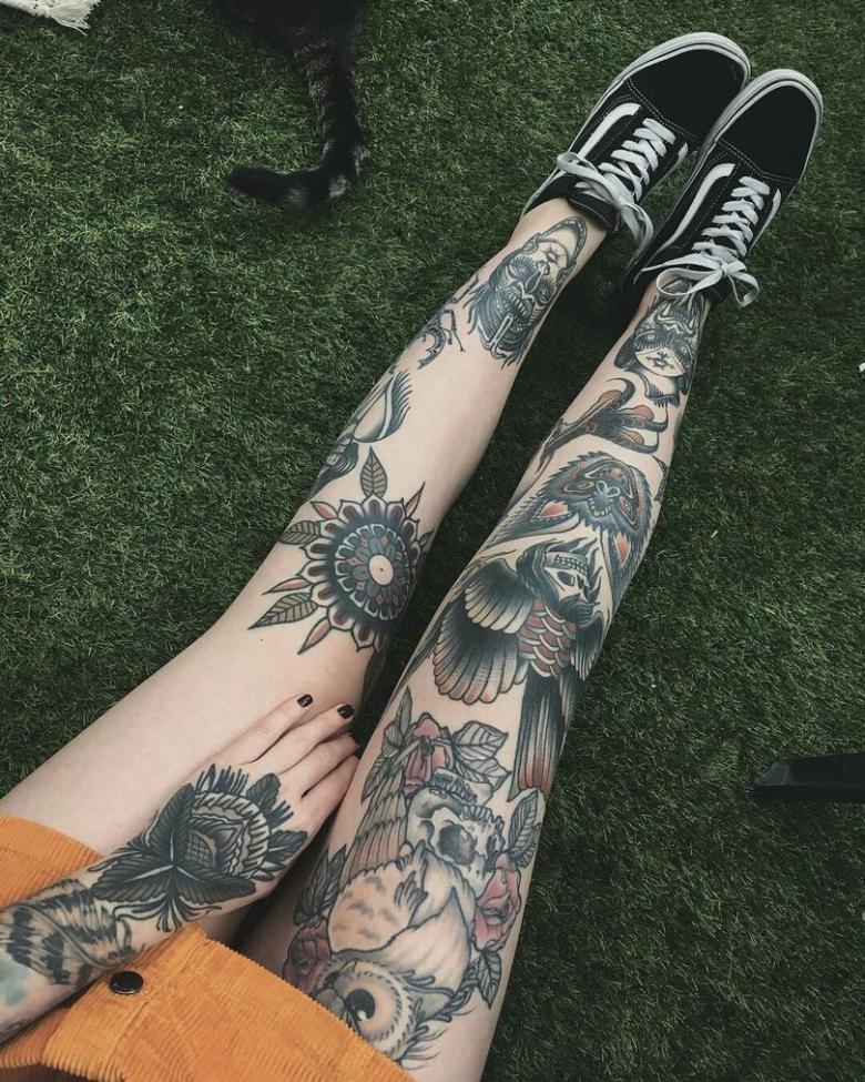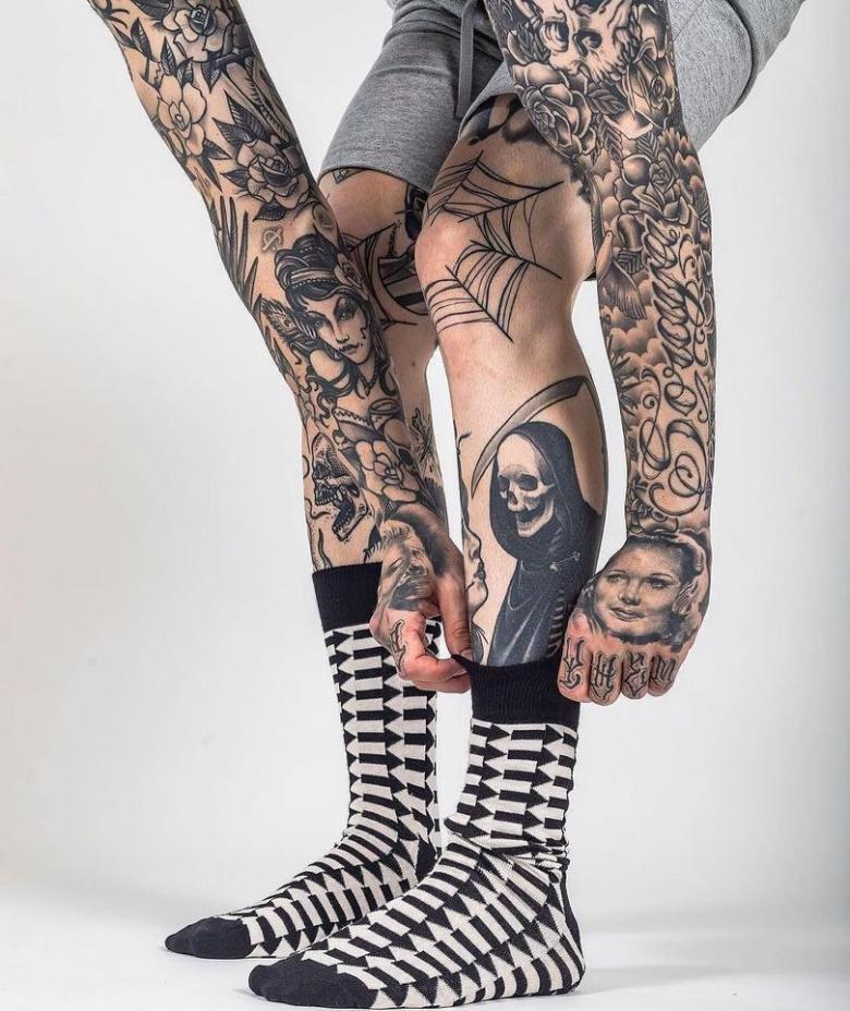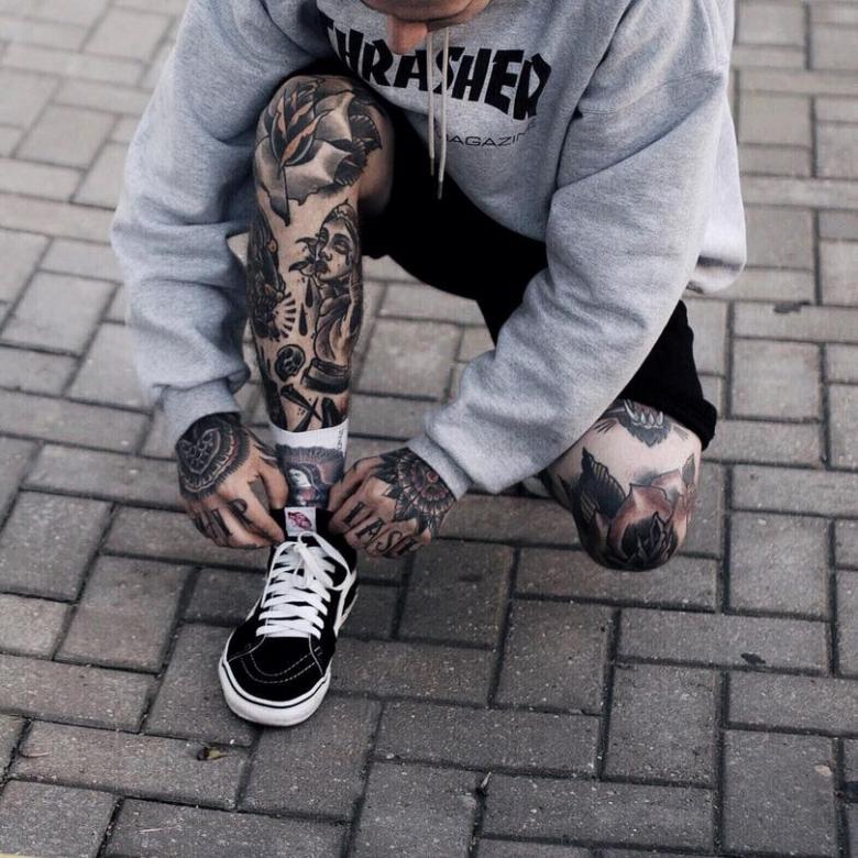 Les hommes choisissent souvent des motifs représentant des animaux prédateurs aux mâchoires grimaçantes, des dragons crachant du feu ou des ornements. Les grands tatouages gagnent également en popularité, couvrant toute la jambe, de la cheville au genou. C'est ainsi que les dragons et les monstres de science-fiction sont dessinés dans le style biomécanique.