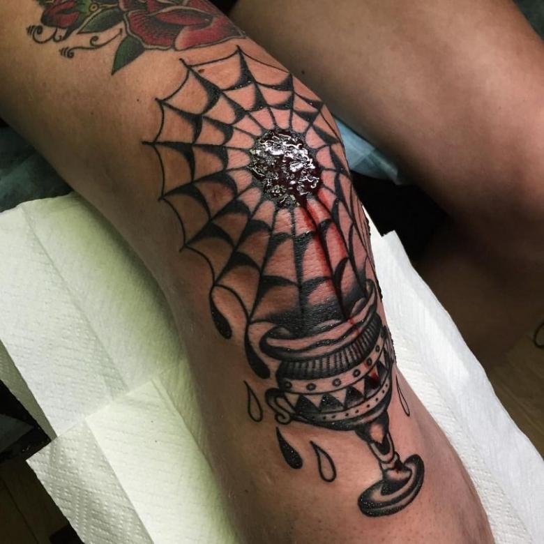- Augmentation de la douleur. Le genou est l'un des endroits les plus douloureux du corps, selon la "carte de la douleur". Il n'y a pratiquement pas de tissu adipeux entre la peau et la rotule, et rien pour atténuer l'impact de l'aiguille. Après l'application d'un tatouage, des bleus sont également laissés derrière. Vous vous souvenez, lorsque vous étiez enfant, du temps qu'il fallait pour que les plaies et les bleus sur vos genoux guérissent ? Les anesthésiques spéciaux utilisés par les maîtres dans les salons aident le client à supporter le processus de tatouage.