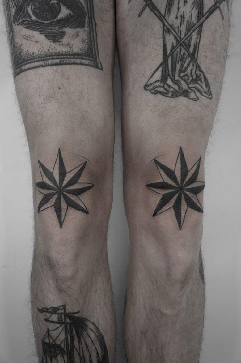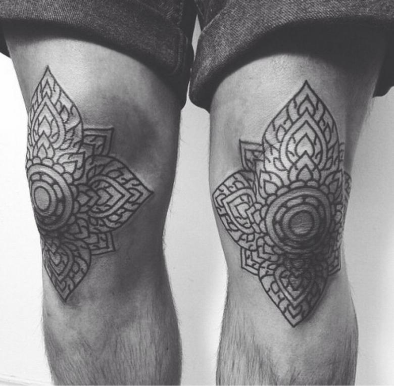 Les ornements, les lettres, les motifs géométriques ou les animaux de proie ont un effet saisissant sur le genou. Il est préférable de choisir des dessins sans aucune subtilité. Sinon, l'image risque d'être bâclée et de se fondre en un seul point.