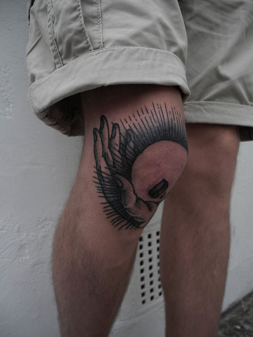 Tatouage sur le genou chez l'homme
