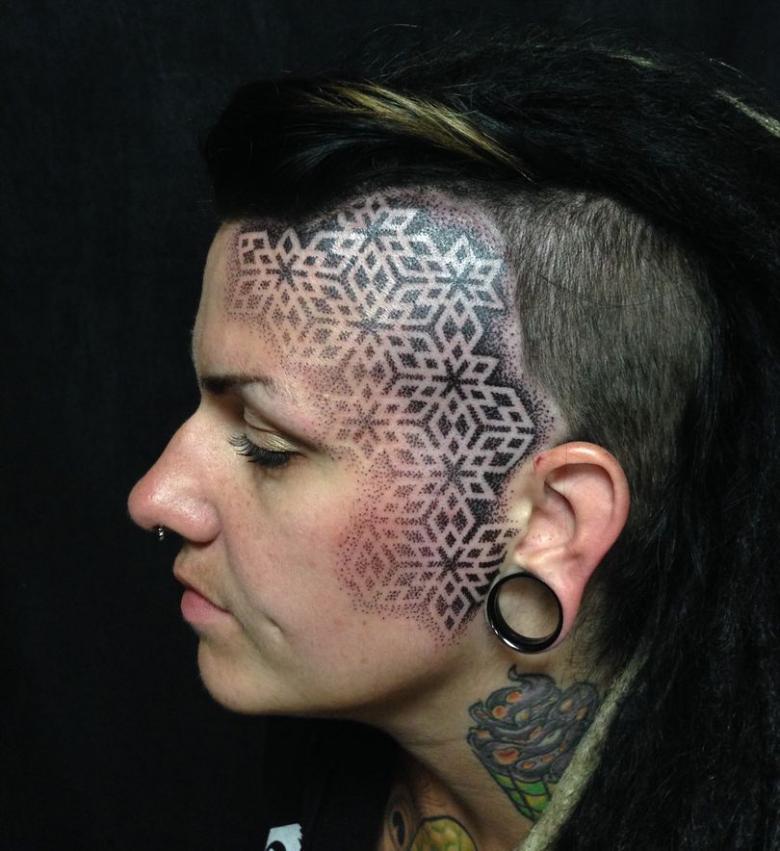 Les tatouages se présentent sous toutes les formes. On peut voir des lettres, des symboles et des images. Il y a des tableaux entiers en couleur et puis il y a des œuvres monochromes semblables à des bijoux qui semblent organiques au visage. La taille et l'emplacement varient également.