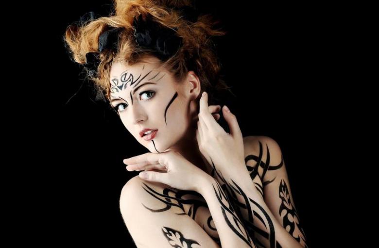 - La beauté. C'est juste magnifique. La plupart de ceux qui décident de compléter leur image de cette manière ont déjà eu des tatouages sur d'autres parties du corps. L'amateur de body-art transforme le corps en une toile pour un maître peintre, et le motif du visage couronne l'ensemble. Associés à la bonne coiffure, ils permettent de créer des looks étonnants et distingués.