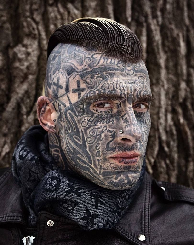 Le tatouage sur le visage comme moyen d'expression a été introduit par les punks il y a plus d'un demi-siècle. C'était une protestation, un défi et une association avec les esclaves qui avaient brisé leurs chaînes. Intransigeant et radical, comme il sied à cette sous-culture.