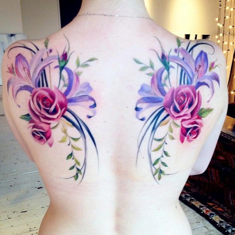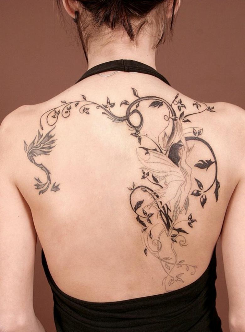Les tatouages élégants sur le dos peuvent être réalisés de manière presque différente : alors que les hommes optent pour une biomécanique "brutale", le réalisme, les variations en 3D, les femmes choisissent souvent le style aquarelle, le minimalisme. Vous pouvez vous faire tatouer en fonction de vos envies et des particularités de votre design.
