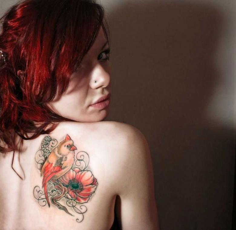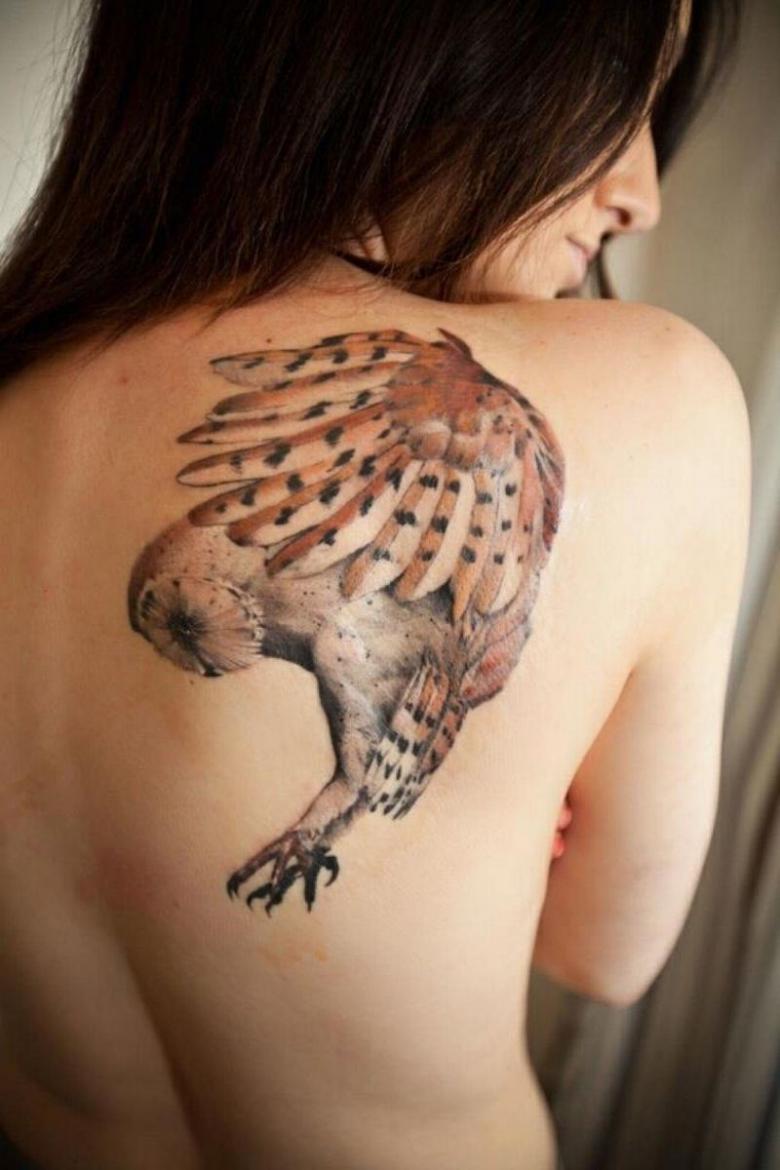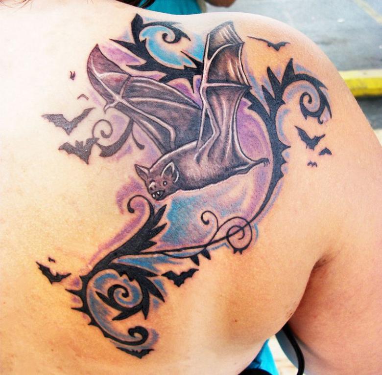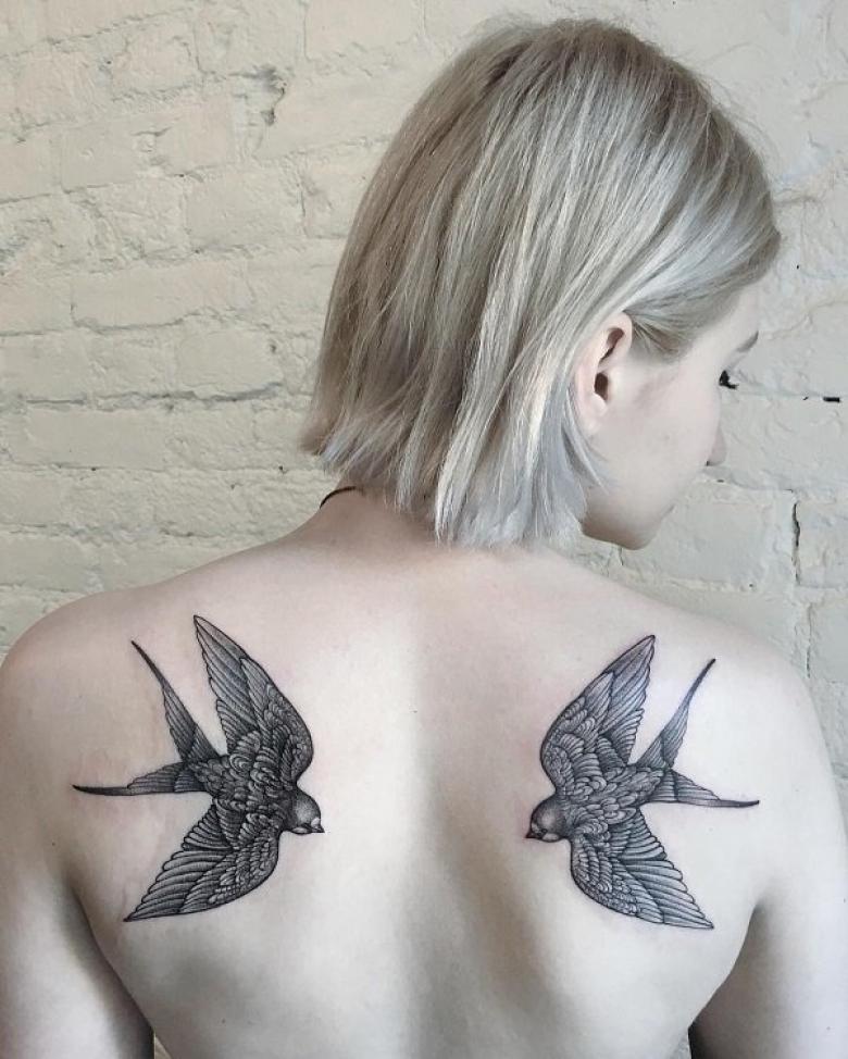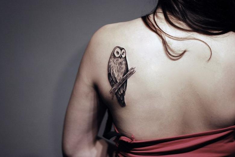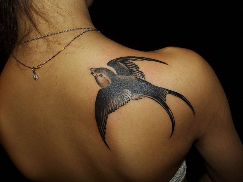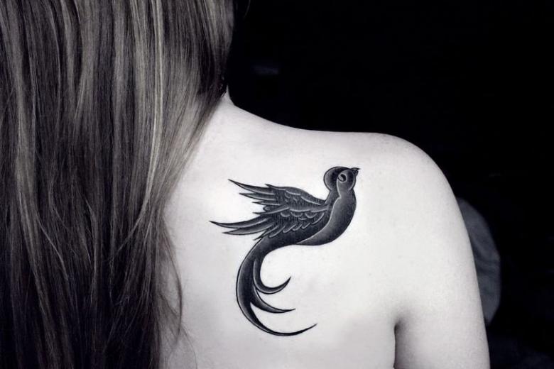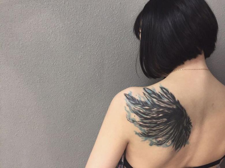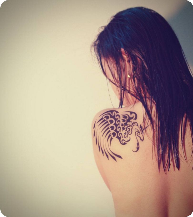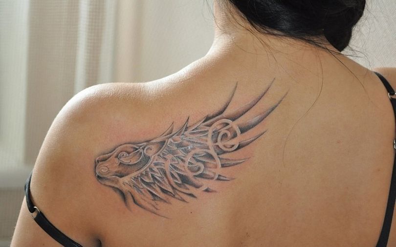 Tatouage sur l'omoplate - styles, significations des différentes images, motifs pour les filles et les hommes (scorpion, loup, dragon, oiseaux, ailes), photos amusantes.