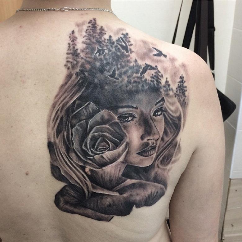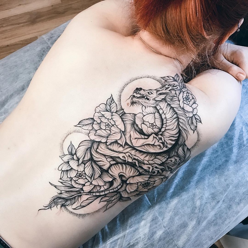 - il est fortement recommandé de ne pas se limiter à cette partie du corps - vous pouvez aller plus loin et étendre le tatouage aux épaules et au cou ;