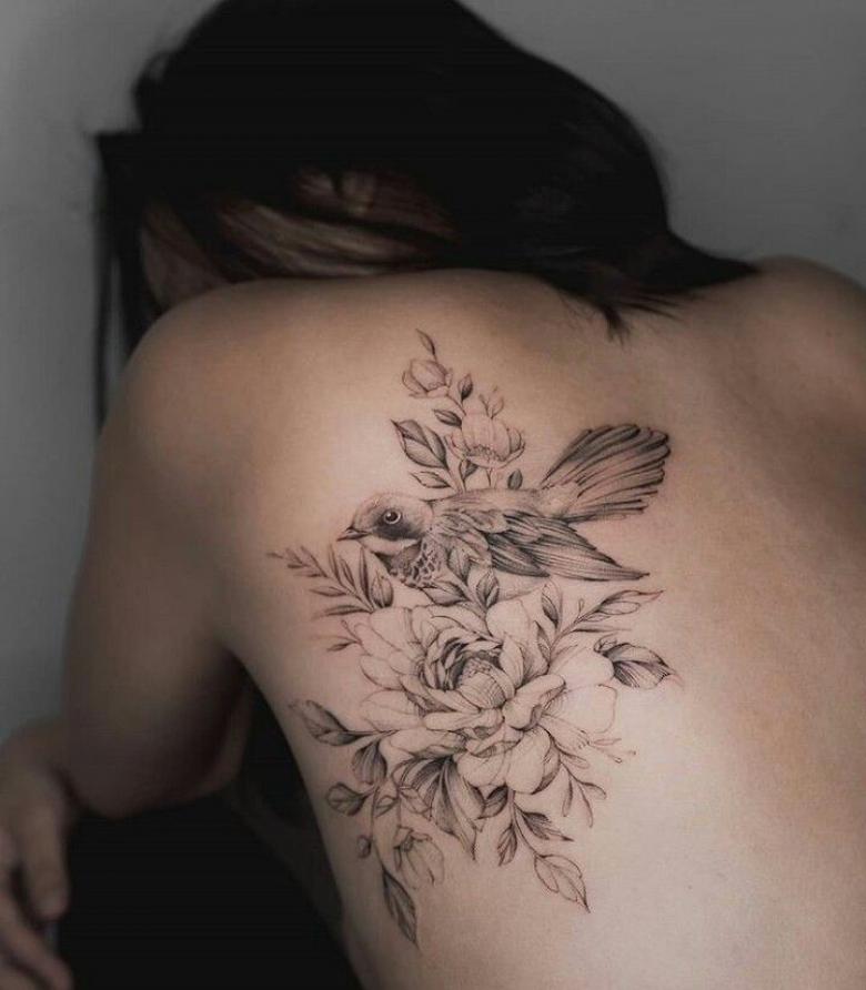 Dessiné à cet endroit de la colonne vertébrale, généralement une figure allongée : un arbre, un instrument tranchant ou une plume. Mais les compositions complètes prennent souvent la forme d'animaux, de mandalas, d'amulettes comme un attrape-rêves, une couronne, des notes de musique ou une clé de sol, des ornements élaborés, etc. Les tatouages intermédiaires sont également exigés par les deux sexes - en général, la mise en œuvre de l'emplacement est un concept très fascinant et énorme.