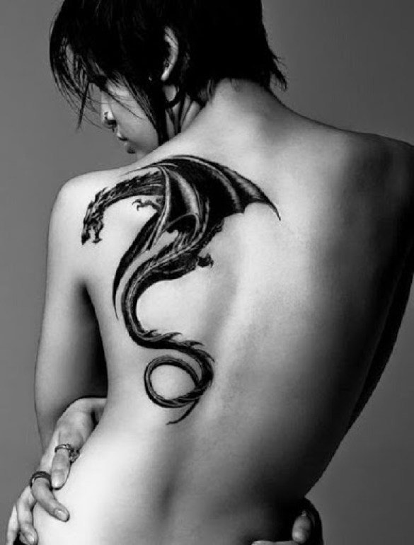 Les tatouages sur l'omoplate droite sont une représentation tridimensionnelle saisissante : d'un insecte à votre personnage de film ou de jeu préféré, vous pouvez choisir n'importe qui comme esquisse. Des animaux fantastiques - les dragons en particulier sont célèbres. Il est bon de préciser que le côté sera difficile à réaliser, la structure occupant une bonne partie du dos, mais c'est aussi une solution qui a l'air impressionnante et magnifique.