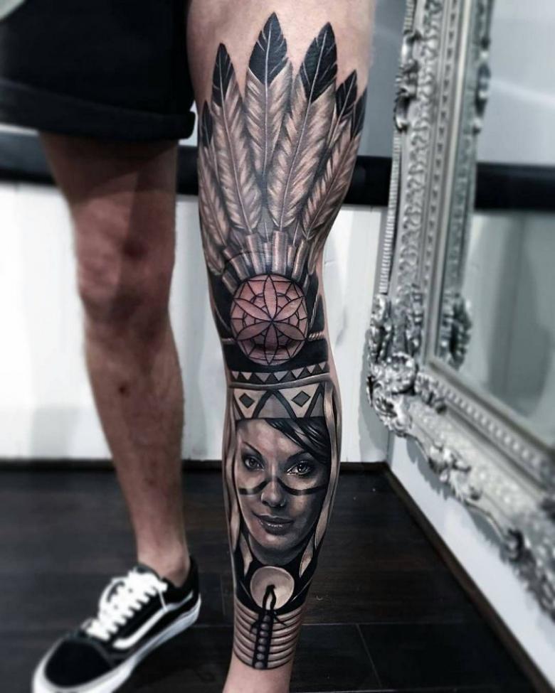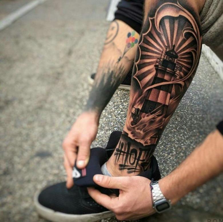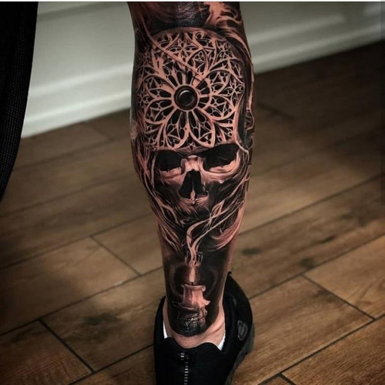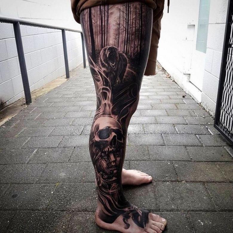 Tatouage sur la jambe pour les hommes - croquis et leur signification, le choix de l'emplacement pour l'application (sur la cuisse, le tibia, le mollet, le pied), photos créatives