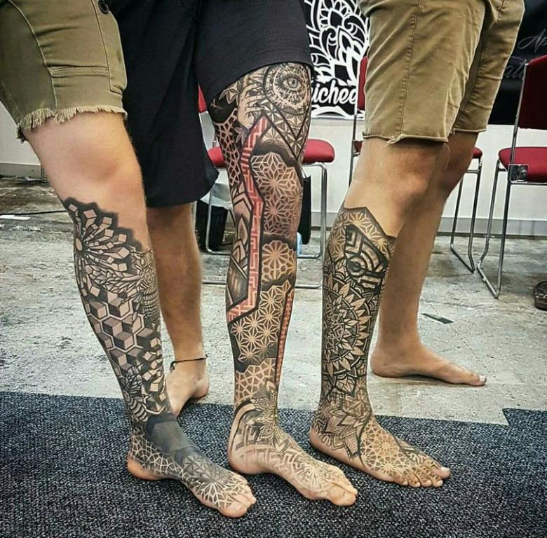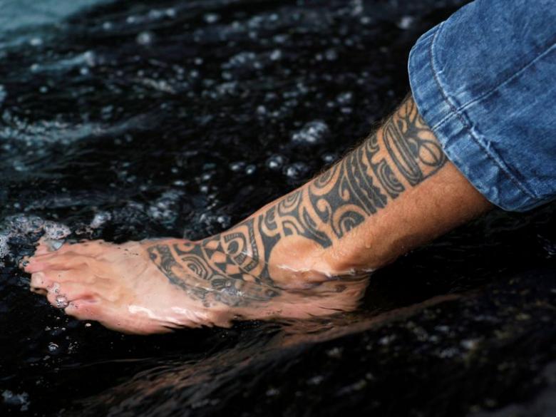 Les hommes se font tatouer des motifs et des ornements sur les jambes. Le motif peut porter sur une partie ou sur l'ensemble de la jambe. Pour certains, il s'agit simplement d'un ornement sans signification. Certains impriment volontairement un motif comme amulette ou talisman. Le choix se porte sur une variété de motifs polynésiens ou celtiques sur le pied qui ont un aspect esthétique.