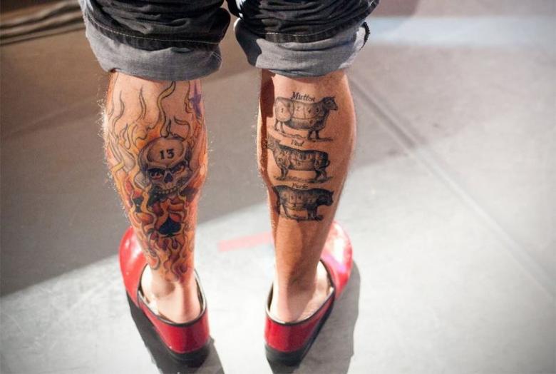 StyleS'il y a déjà des tatouages sur la jambe, il est important que le nouveau dessin s'intègre dans la composition. Le style du tatouage doit également tenir compte des vêtements que porte le futur porteur afin de ne pas paraître ridicule. Le tatouage ne doit pas paraître absurde lorsqu'une partie de l'image est couverte par des vêtements.