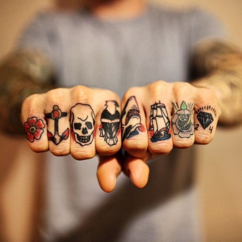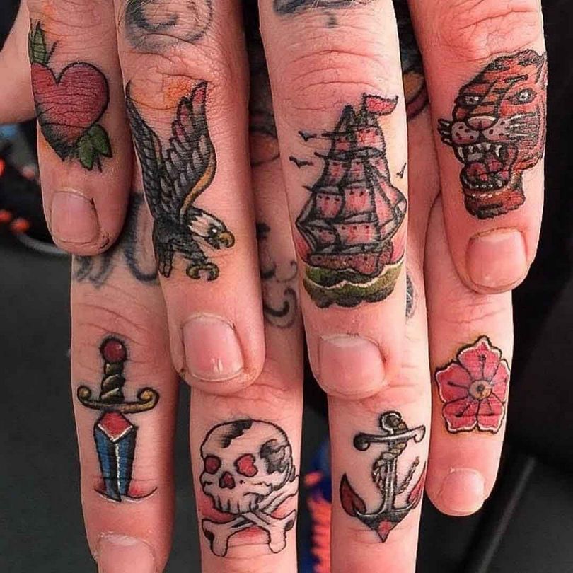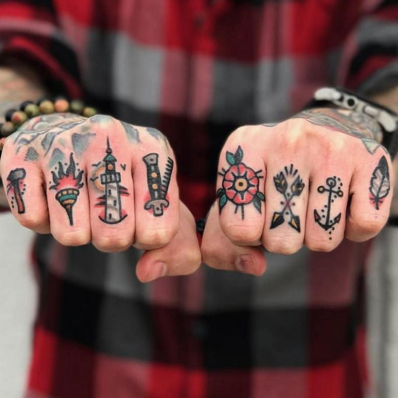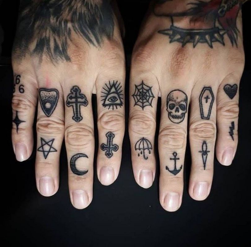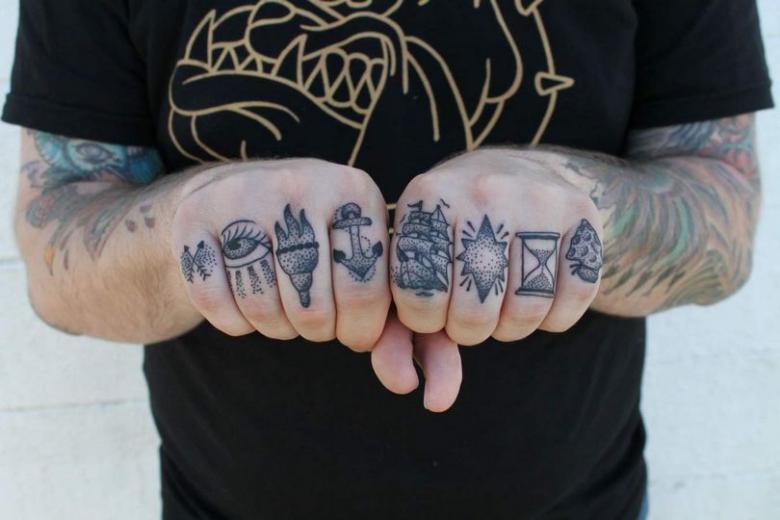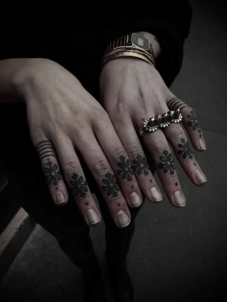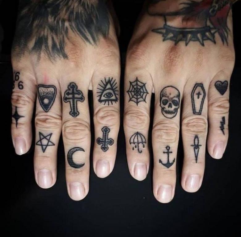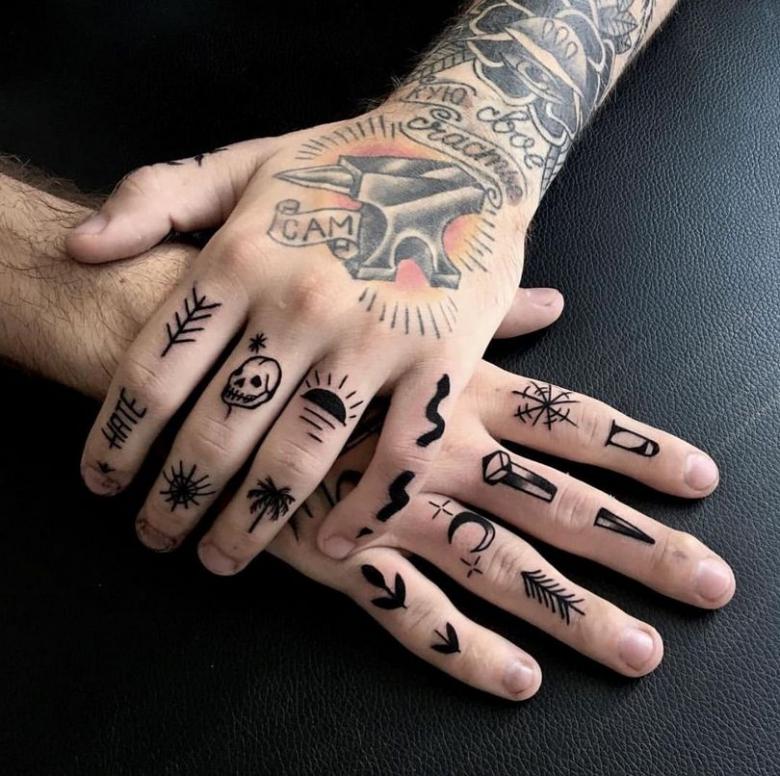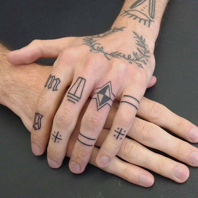 Les hommes considèrent souvent les tatouages sur les doigts comme une extension de la composition sur la main ou sur le bras sous la forme d'une manche. Comme les filles, les hommes optent souvent pour un tatouage de figure mandala. Ces symboles anciens sont populaires auprès des deux sexes. Les personnes intéressées par les pratiques spirituelles font de tels signes sur le corps, souvent sur les doigts, pour améliorer leur bien-être et atteindre la paix de l'esprit.