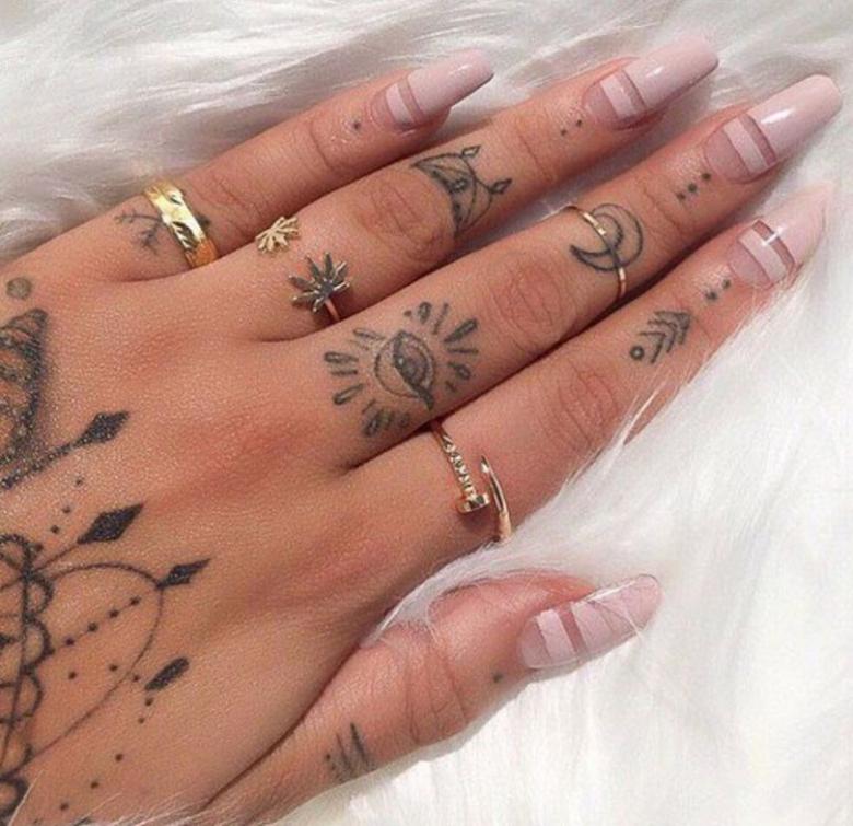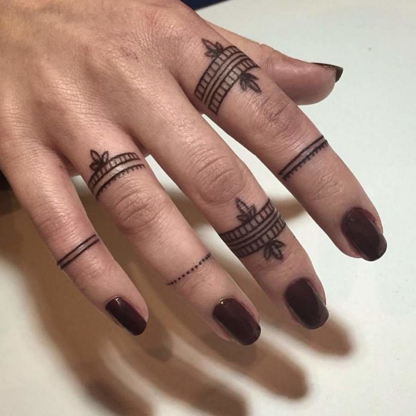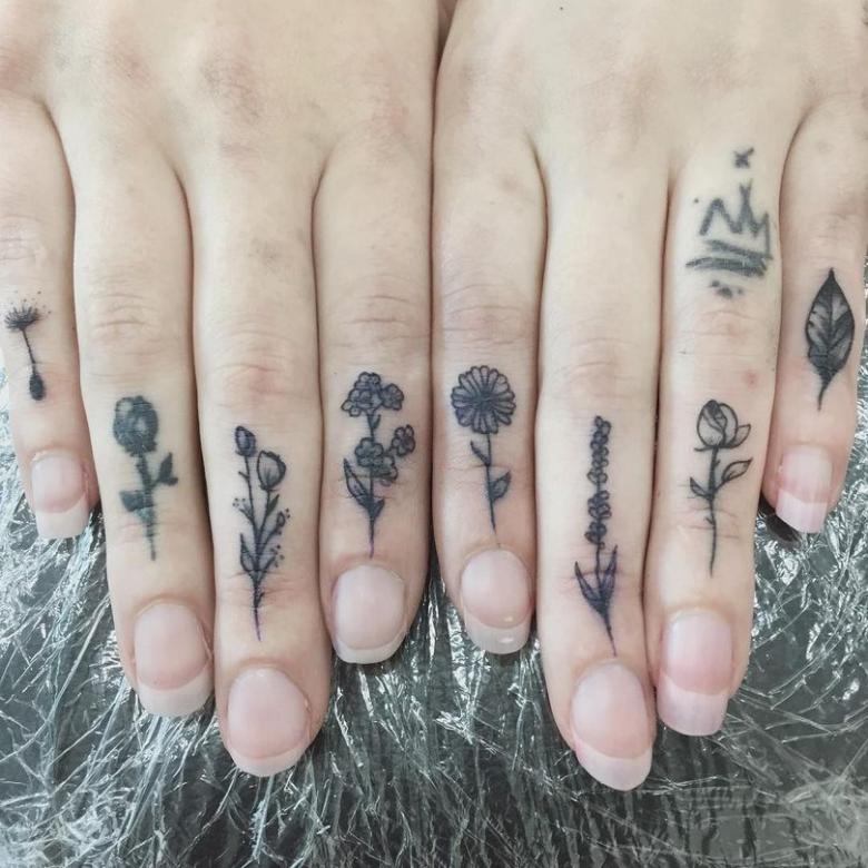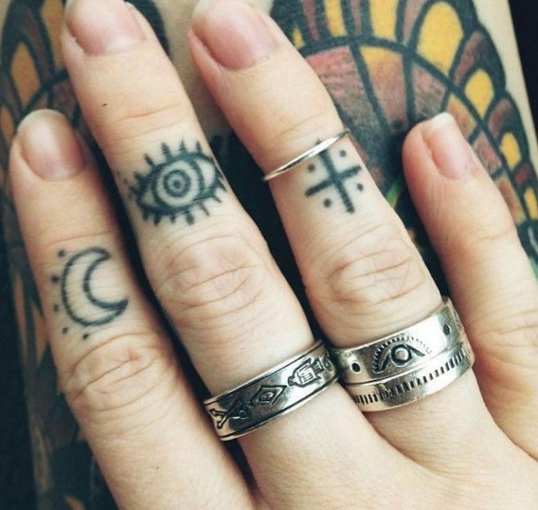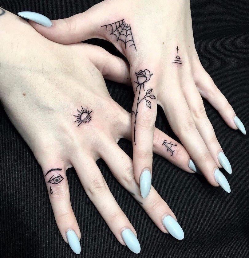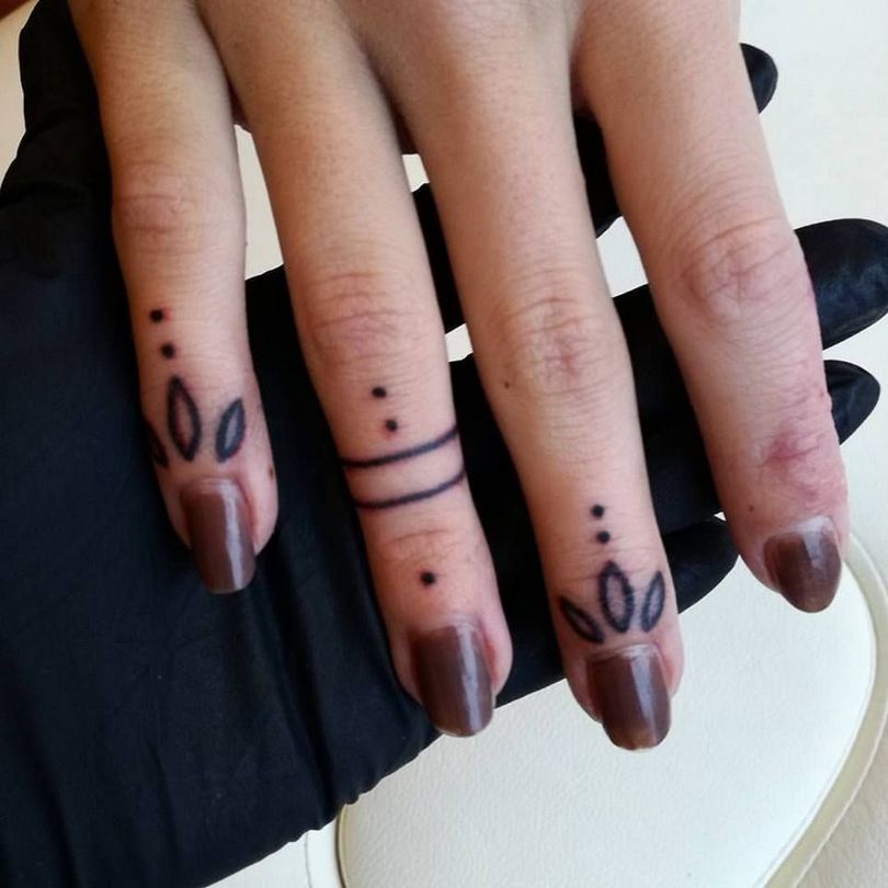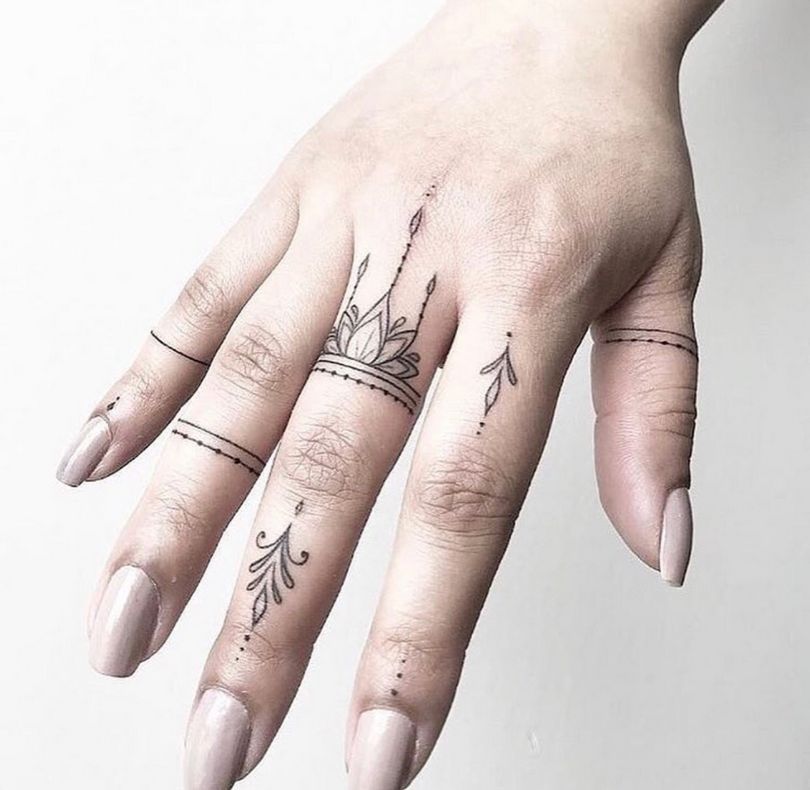 Les filles obtiennent souvent des dessins sur leurs doigts sous la forme d'un seul tatouage. Il arrive parfois qu'un tatouage sur le doigt d'une femme soit le prolongement d'un motif plus grand sur le poignet ou la main. De nombreuses jeunes filles qui décident de se faire tatouer constatent que cela a donné une nouvelle couleur à leur vie.