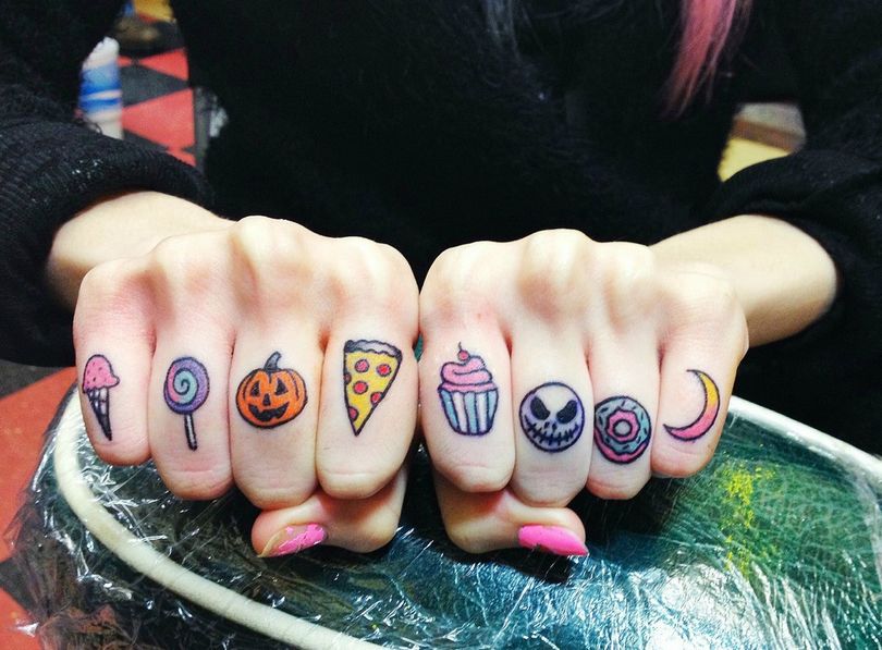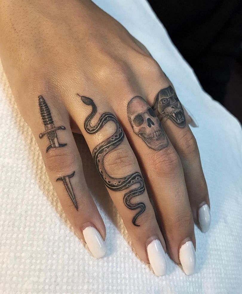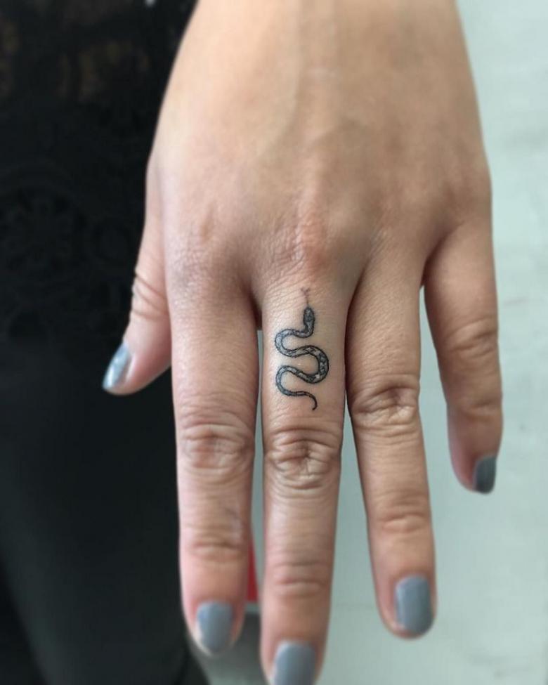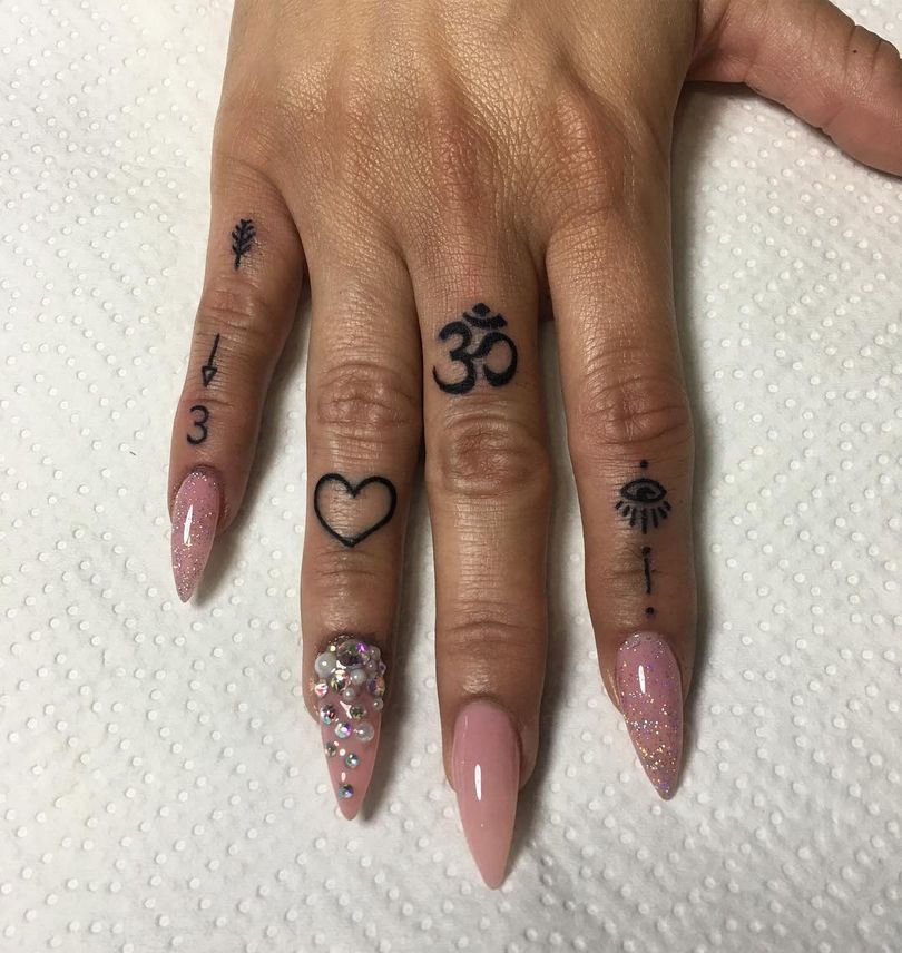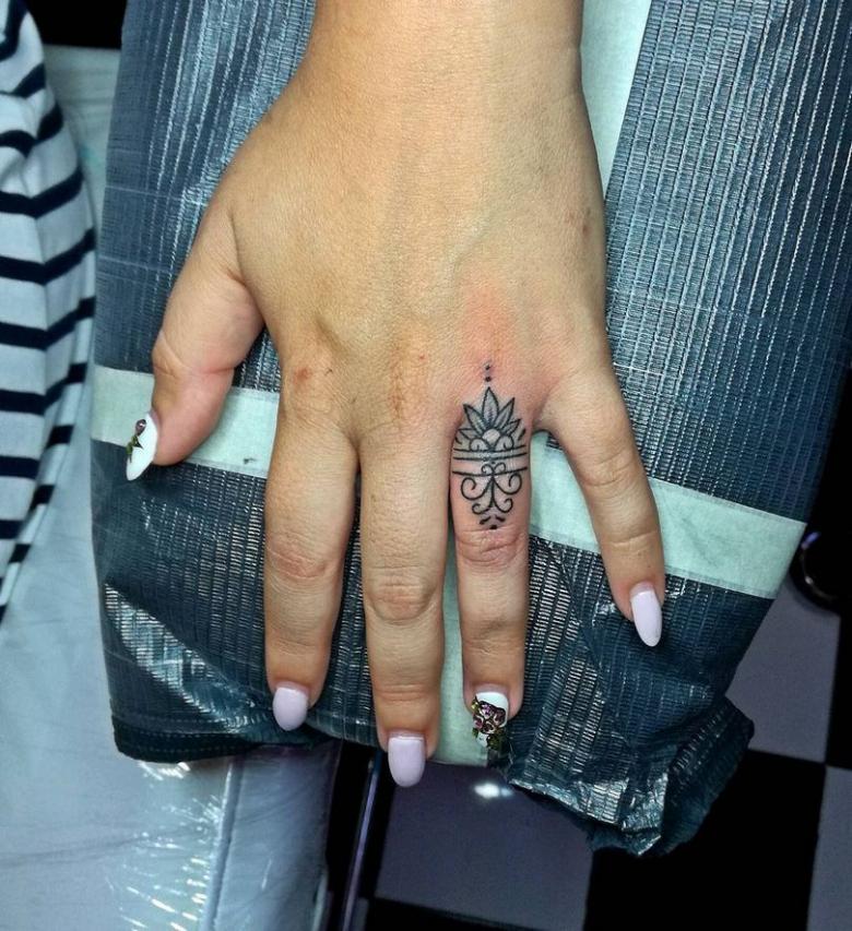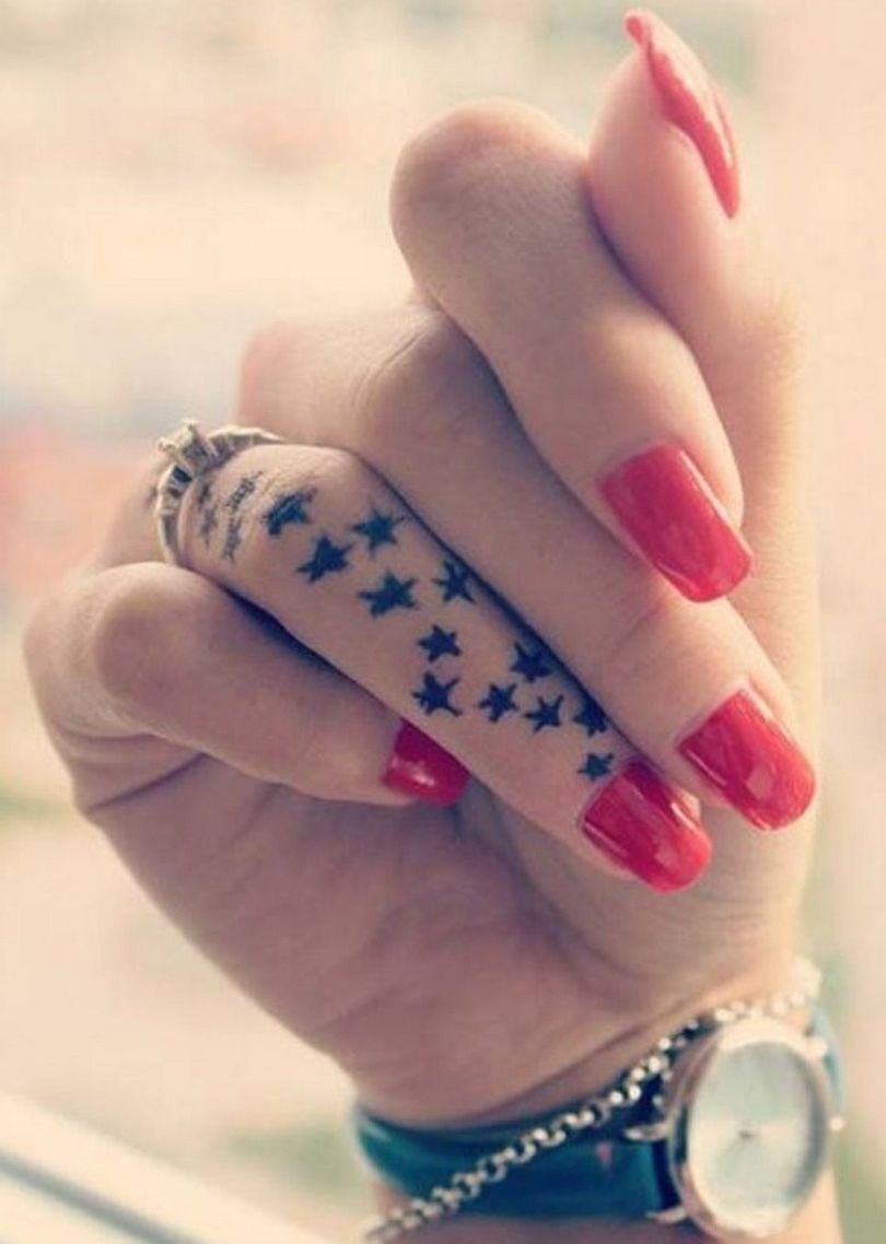 Les filles obtiennent souvent des dessins sur leurs doigts sous la forme d'un seul tatouage. Il arrive parfois qu'un tatouage sur le doigt d'une femme soit le prolongement d'un motif plus grand sur le poignet ou la main. De nombreuses jeunes filles qui décident de se faire tatouer constatent que cela a donné une nouvelle couleur à leur vie.