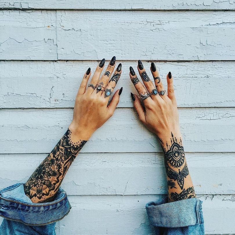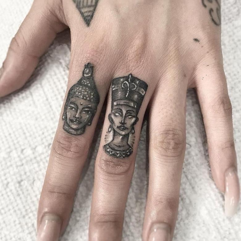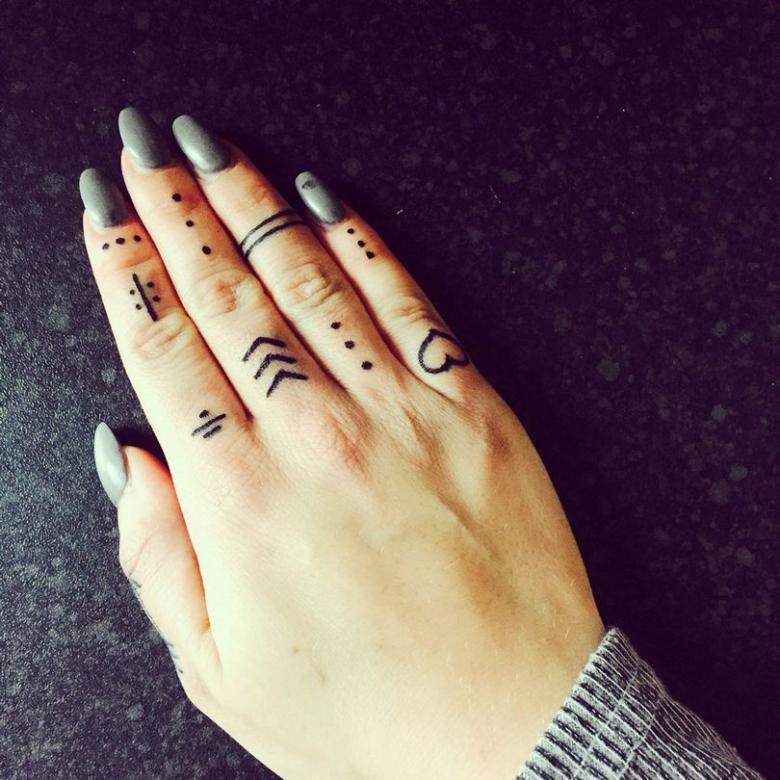 Lorsqu'un symbole ou une amulette est inscrit sur le doigt, les mouvements deviennent plus confiants, la perception change, une femme devient plus détendue et plus courageuse. Pour les tatouages de doigts, les filles ont tendance à choisir des thèmes féminins.