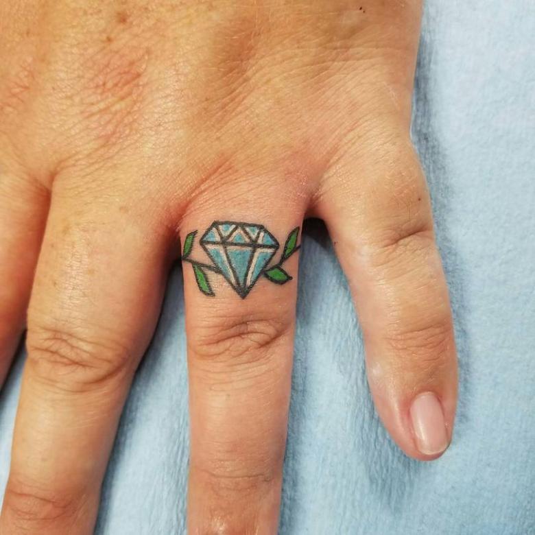 Des anneaux et des pierres. L'image d'une bague est très efficace sur le doigt d'un homme. Il peut être utilisé seul, ou combiné avec d'autres motifs de doigts. L'image d'une pierre précieuse, comme un diamant, peut être appliquée sur la phalange. Le design montre le statut élevé de celui qui le porte. Cette personne connaît sa valeur et est capable d'atteindre ses objectifs.