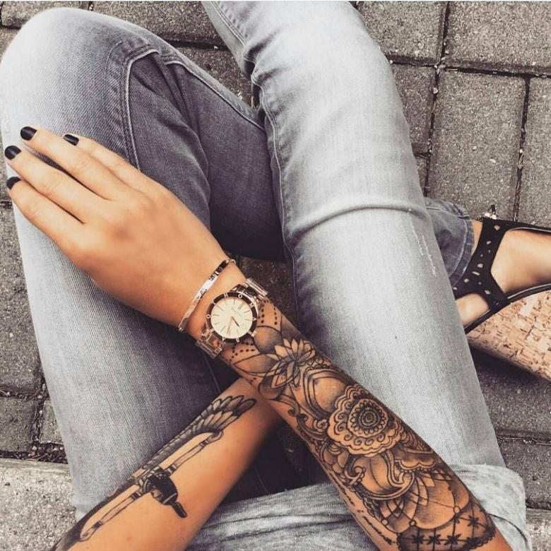 Les tatouages féminins sur les bras sont aujourd'hui au sommet de leur popularité. Il s'agit d'une manière accessible d'exprimer des attitudes de vie et de démontrer ouvertement des traits de caractère.