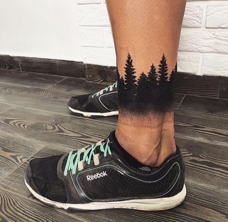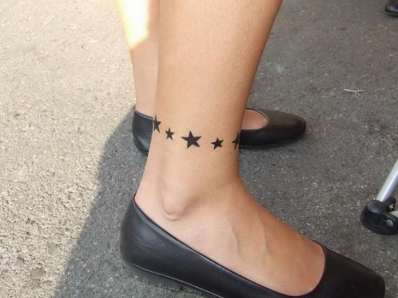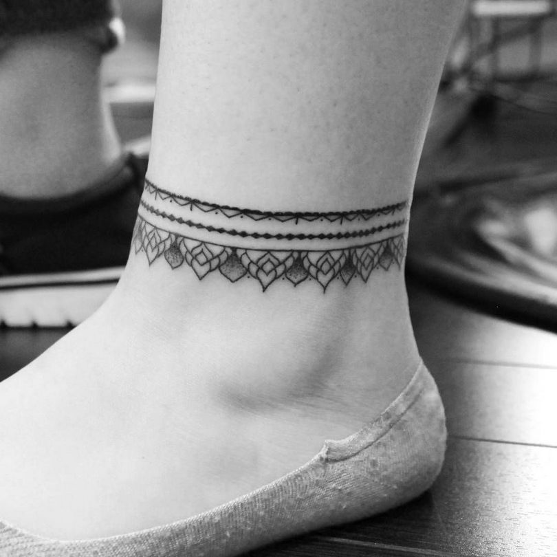 - Tatouage en forme de bracelet sur la cheville - une image très populaire : il peut être fin ou large, pour souligner la beauté des chevilles et même améliorer la forme des jambes à la demande de l'hôtesse par un motif géométrique ou floral ;