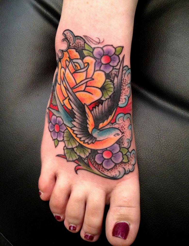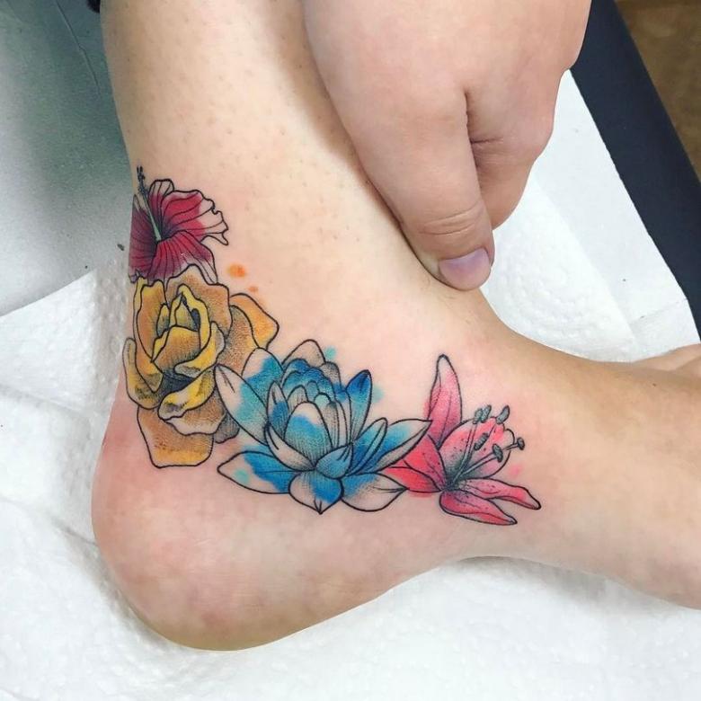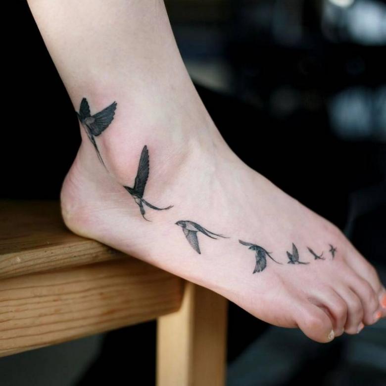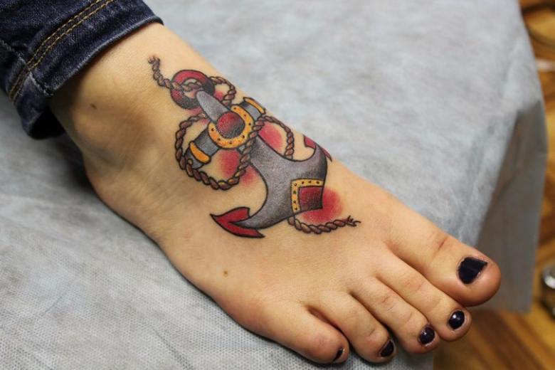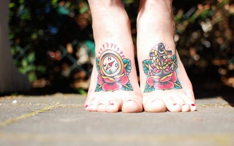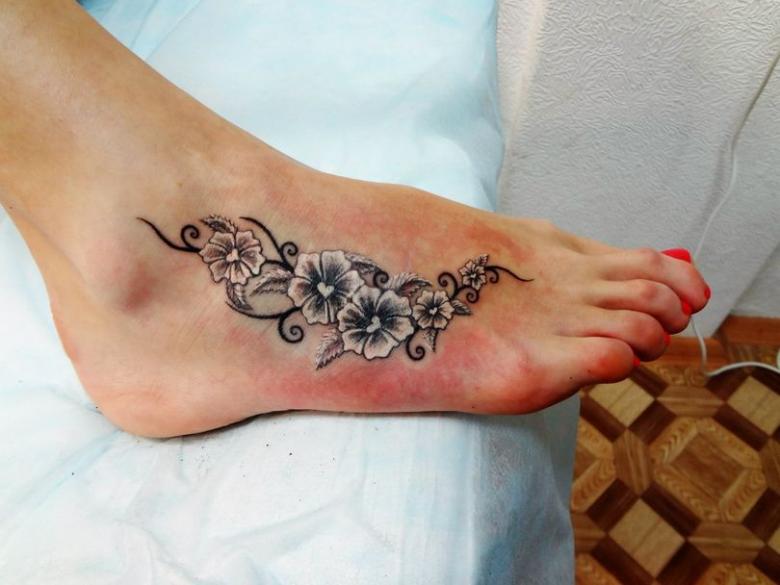 Tatouage dans cette zone maîtres conseiller de faire dans la période estivale, parce que certains temps de porter des chaussures sera livrer l'inconfort. Après l'intervention, il est recommandé de porter pendant quelques jours des sandales ouvertes, des tongs, nécessairement avec des chaussettes en coton. Portez des chaussures confortables auxquelles votre pied est habitué et qui ne vous causeront pas de gêne supplémentaire.