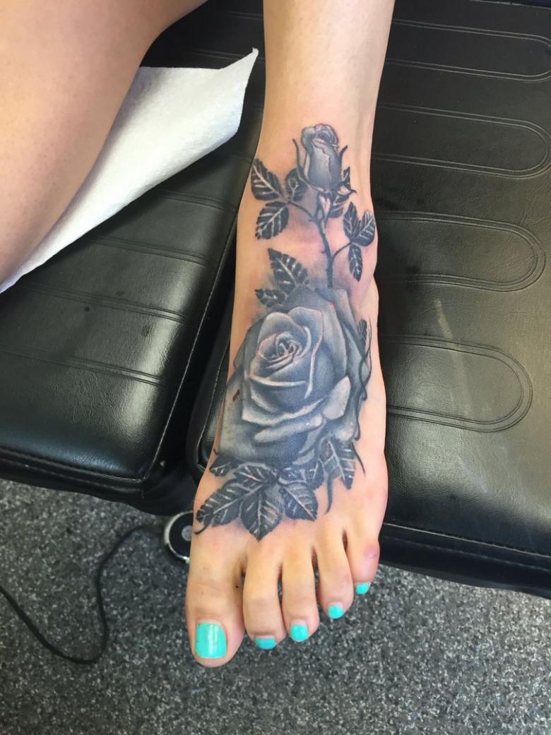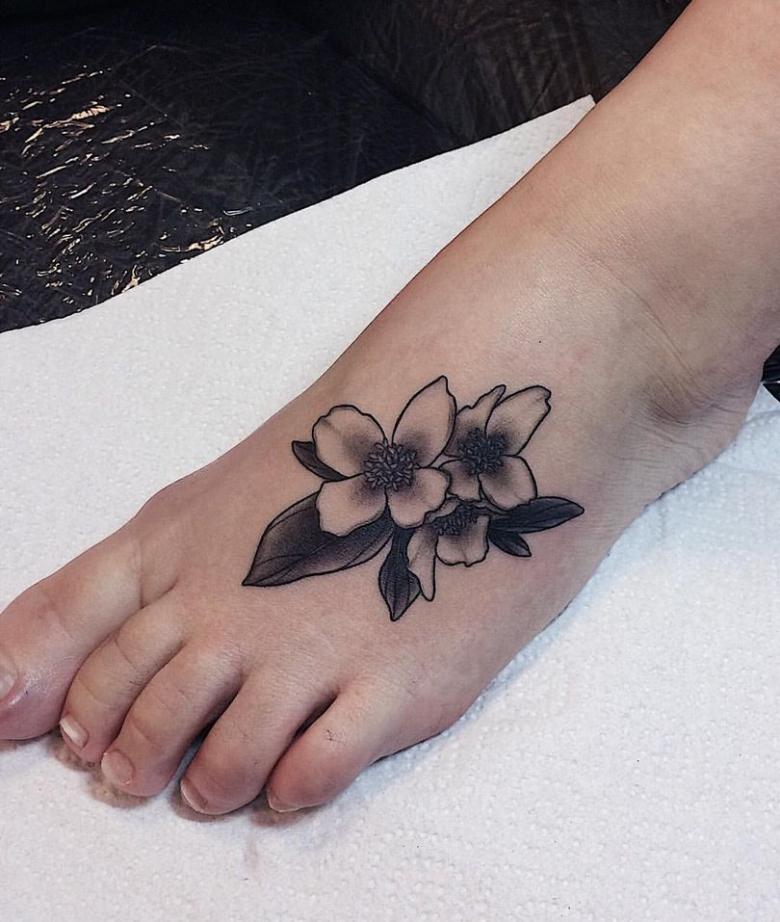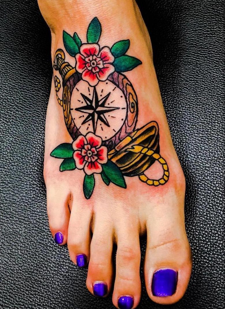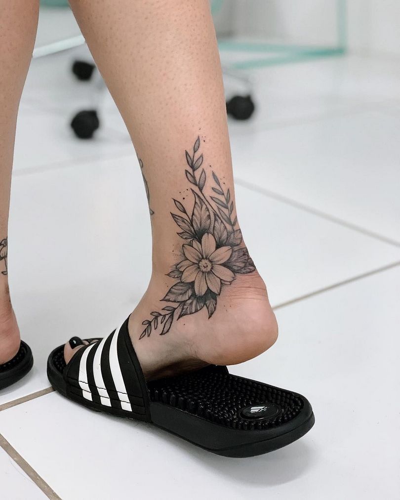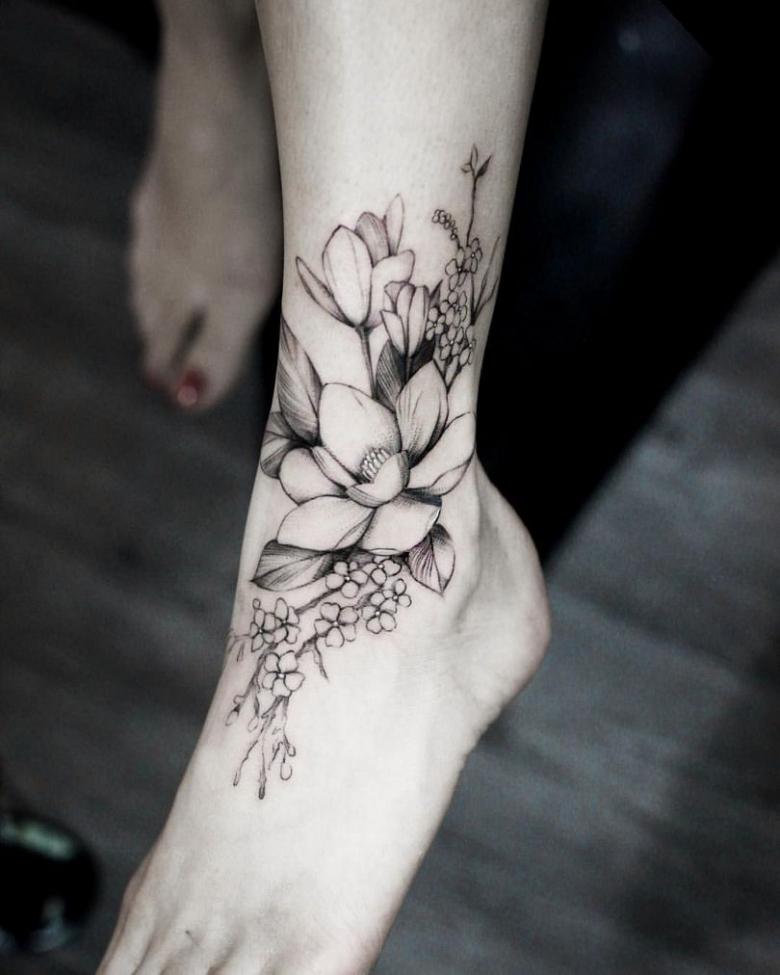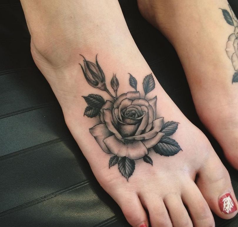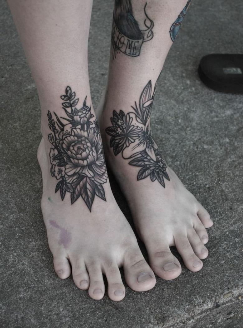 Le pied a une petite surface, il est donc difficile d'adapter un grand dessin. Mais il est possible de créer un beau motif où le tatouage progresse du pied au tibia, remonte jusqu'au genou et peut aller jusqu'à la hanche. Le corps d'une femme est beau avec des lignes fluides qui accentuent la beauté de sa silhouette.