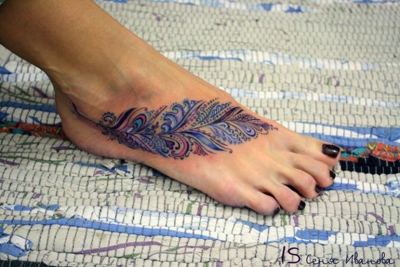 Tatouage sur le pied - où placer, comment soigner, les espèces, de belles photos de travail