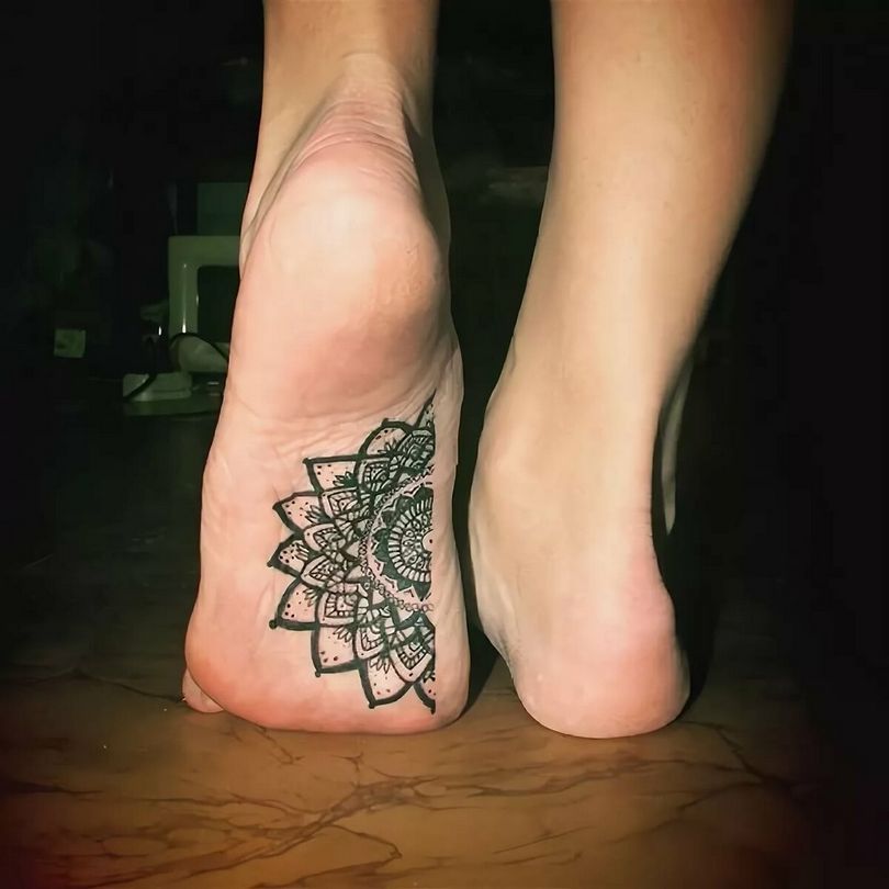 Sur la semelle. Tous les artistes ne seront pas en mesure de réaliser un tel tatouage. Comme là, très souvent, la peau est effacée et statufiée, le tatouage perd rapidement son aspect, la peau est rapidement remplacée par une nouvelle. Et beaucoup ont peur d'être chatouillés, il est possible d'endommager non seulement soi-même mais aussi le maître.